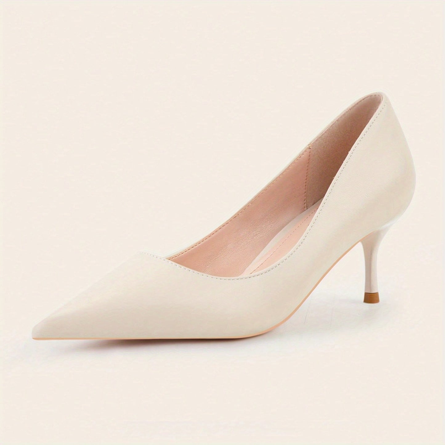 Pompes Élégantes Femme - Talon Moyen Confortable, Pointu, Beige