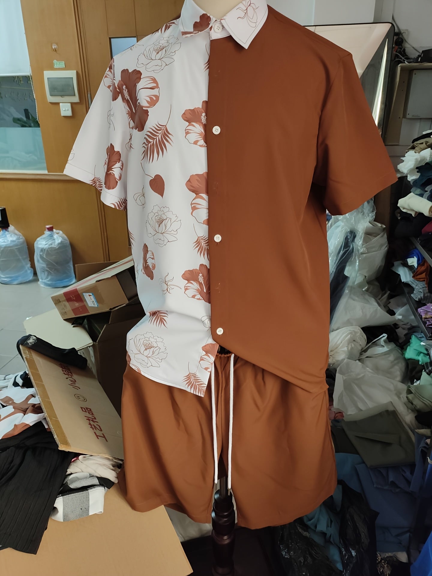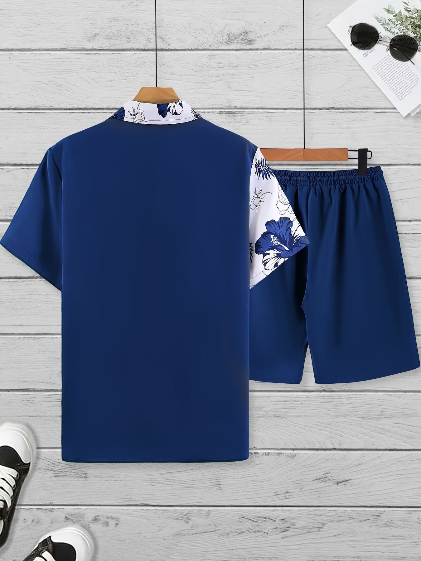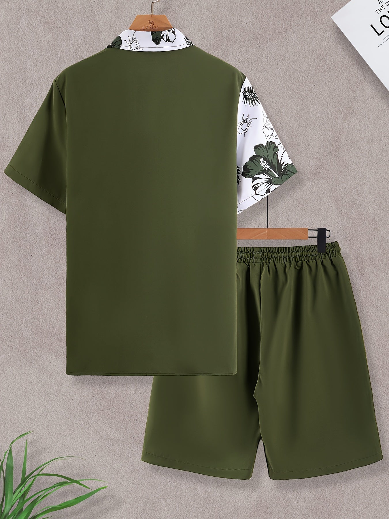 Conjuezz Men's Floral Print Short Sleeve Shirt & Shorts Set - Summer Style