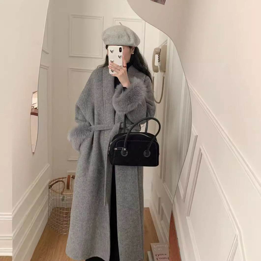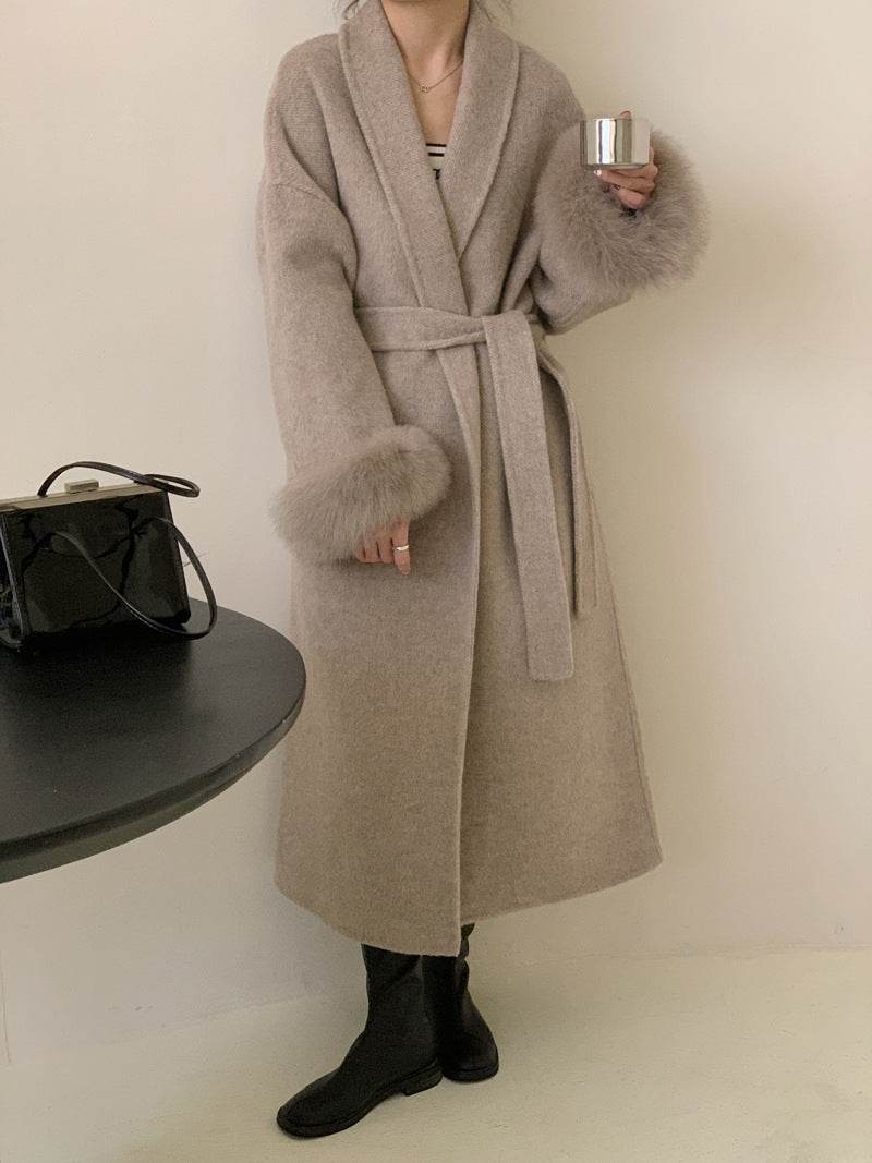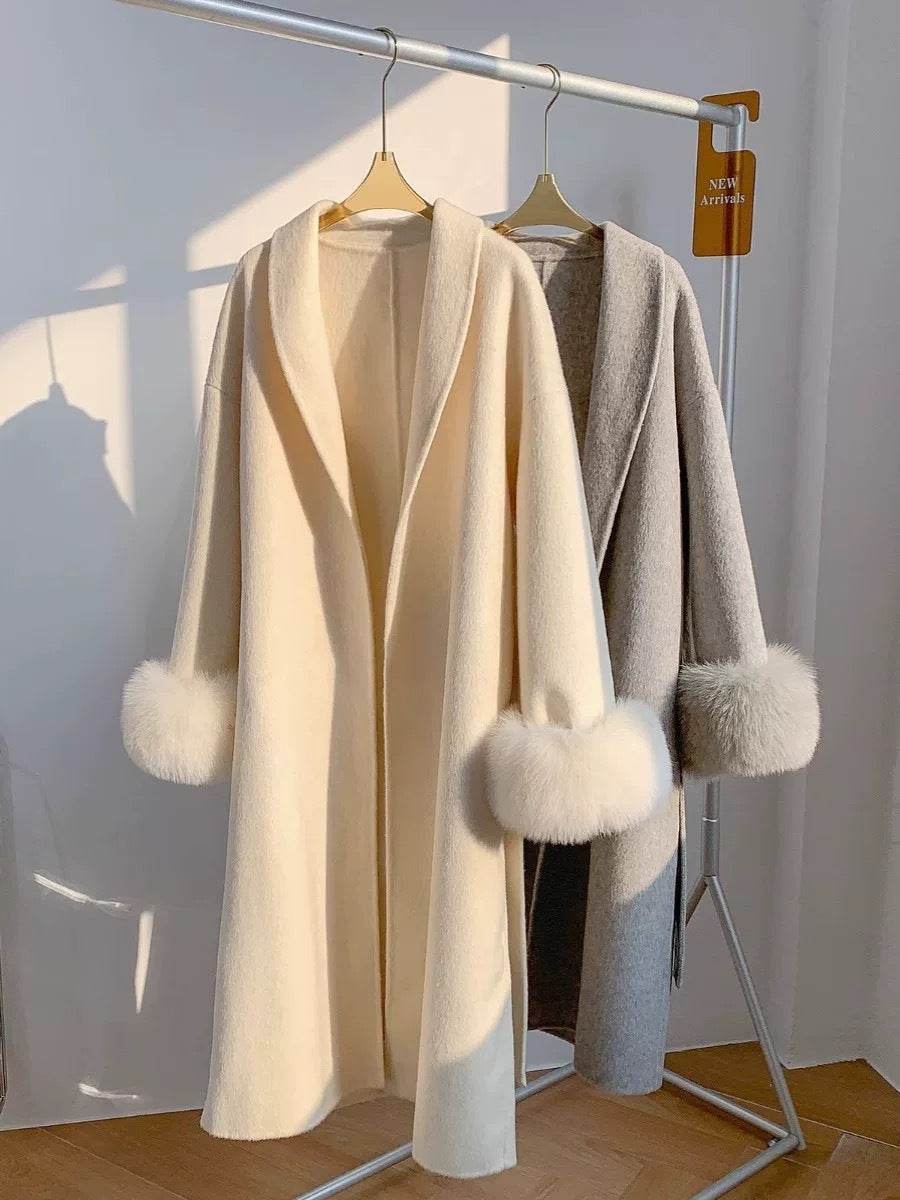 Women's Reversible Cashmere Coat - Elegant Long Lapel & Stylish Design
