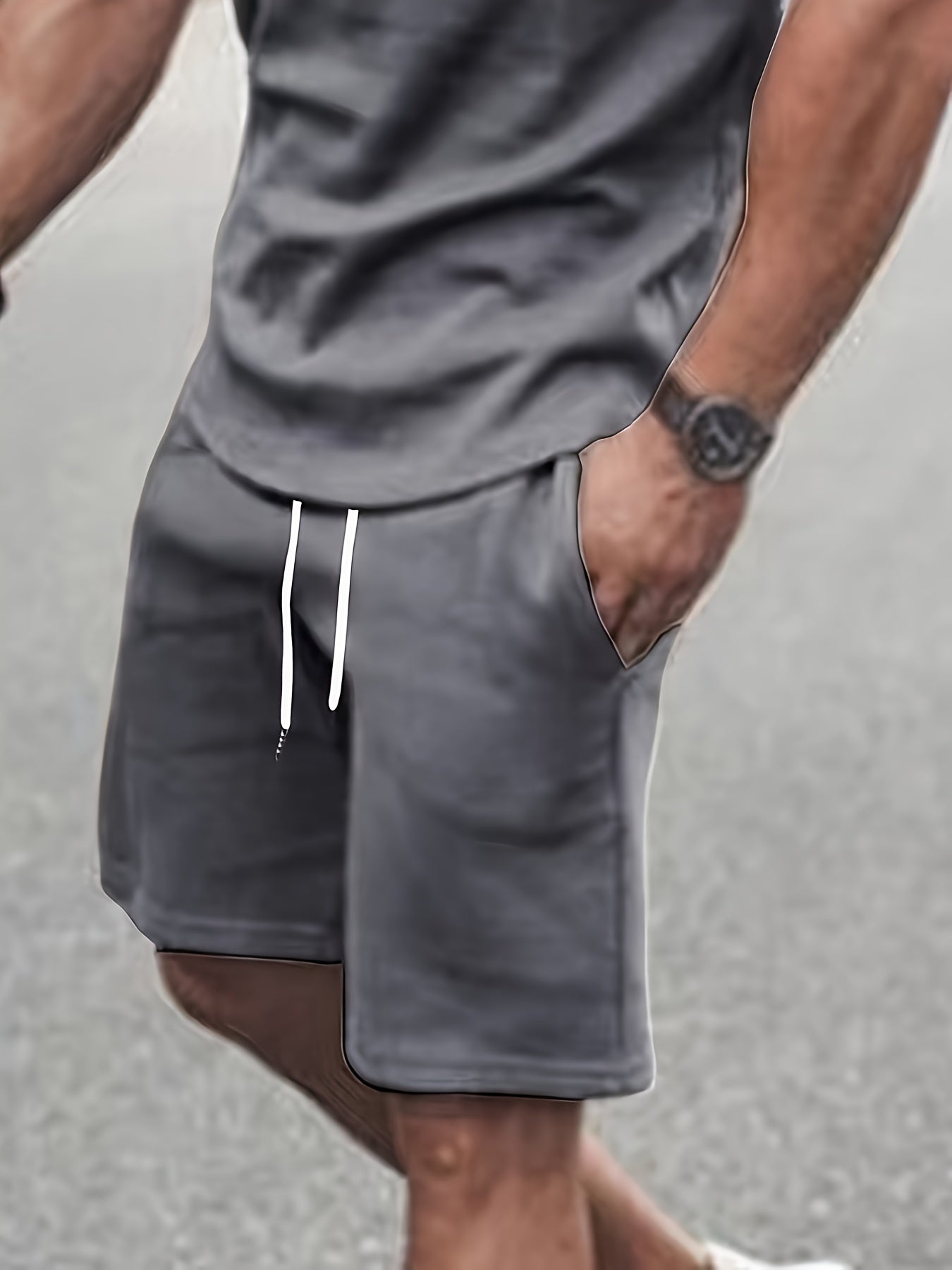 Casual Men's Short Sleeve Suit - Solid Color Summer Set