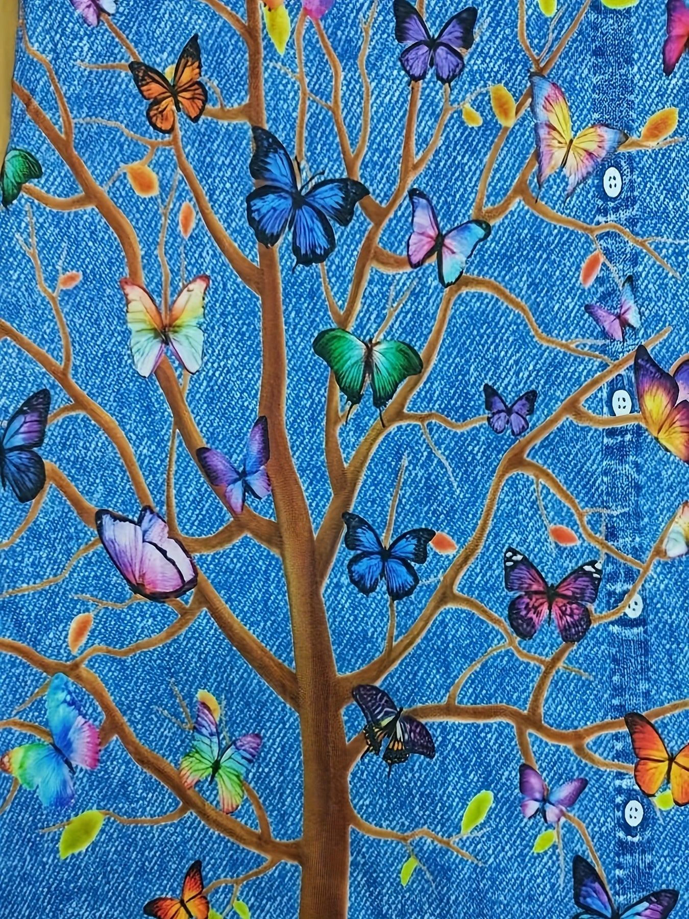 Youduomi Women's Stretchy Denim Dress - Elegant Butterfly Print Style