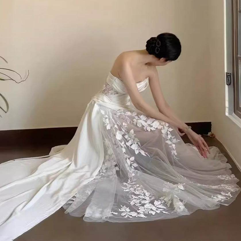 Elegant Satin Lace Fishtail Wedding Dress - Tube Top & Sleeveless Style