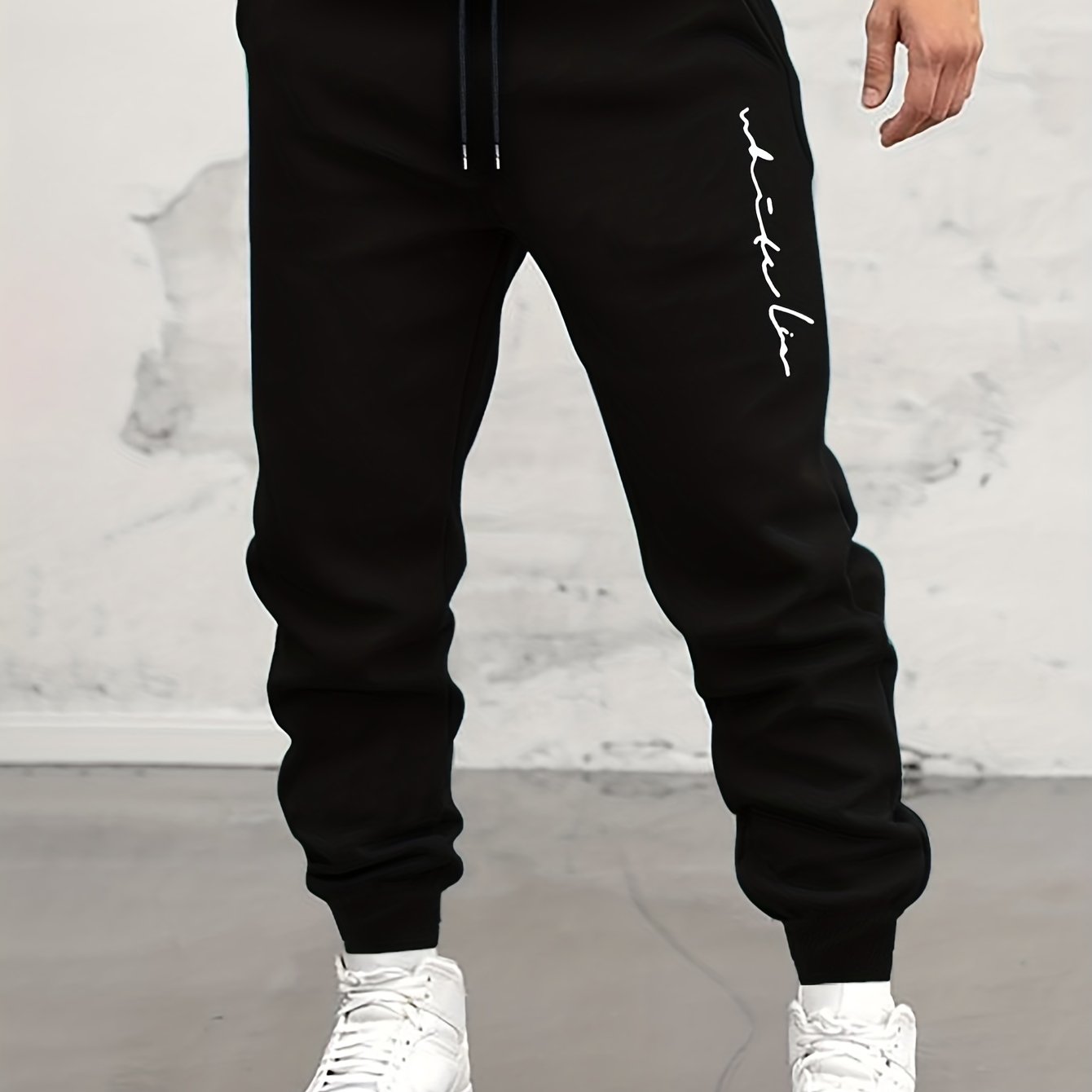 Introducing our Letter Print Drawstring Sweatpants, designed for comfort and style. These men's casual joggers feature a slightly stretchable fabric, making them perfect for running or everyday wear during spring and autumn. Crafted from 100% polyester, they offer durability and breathability.