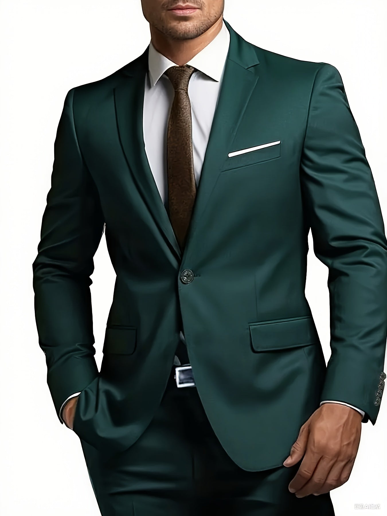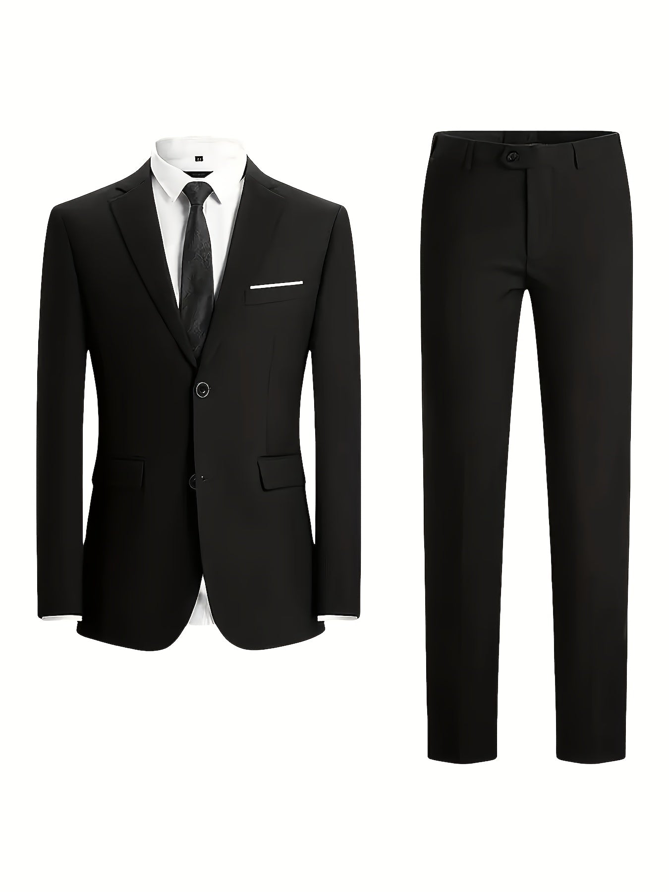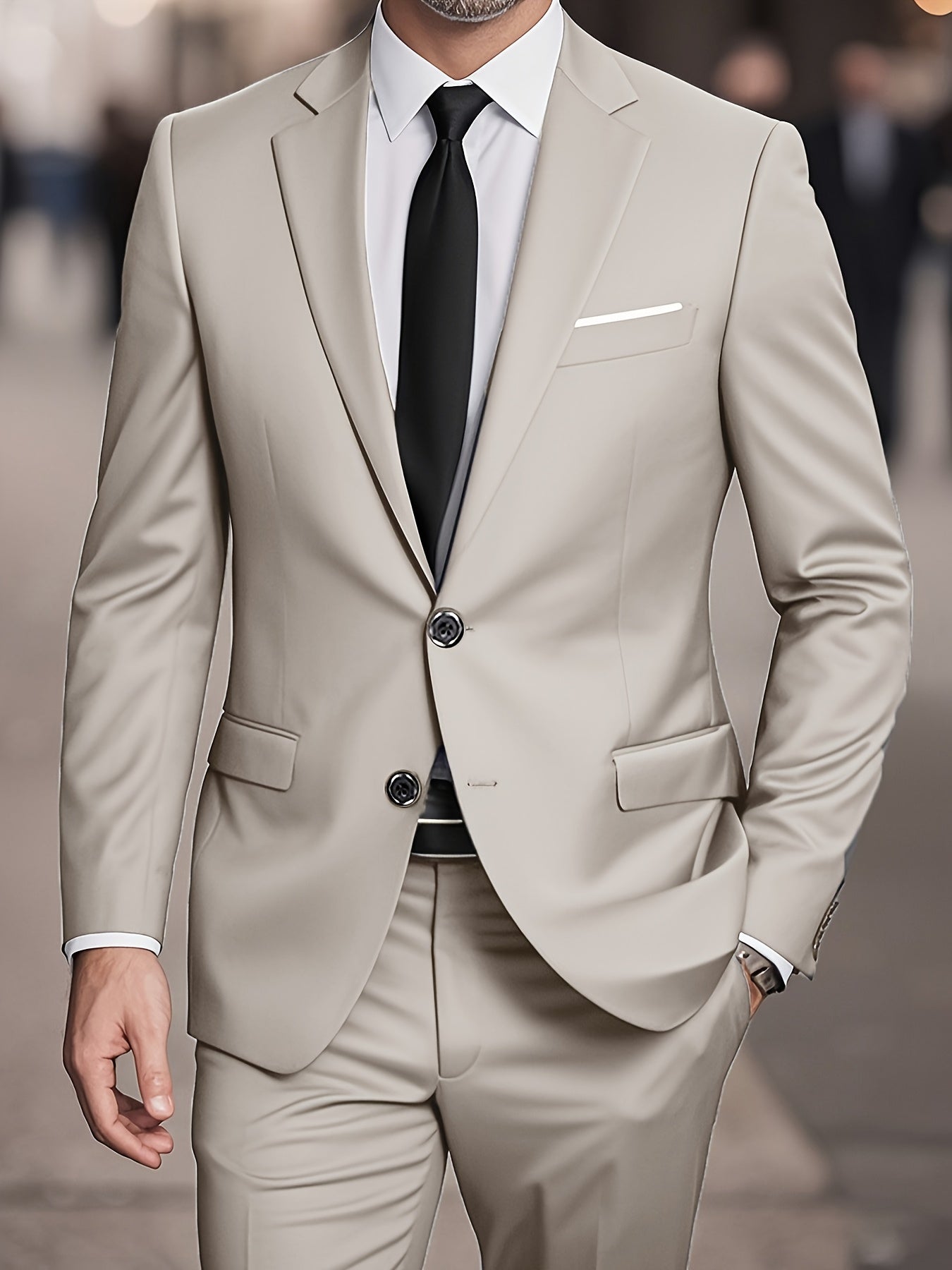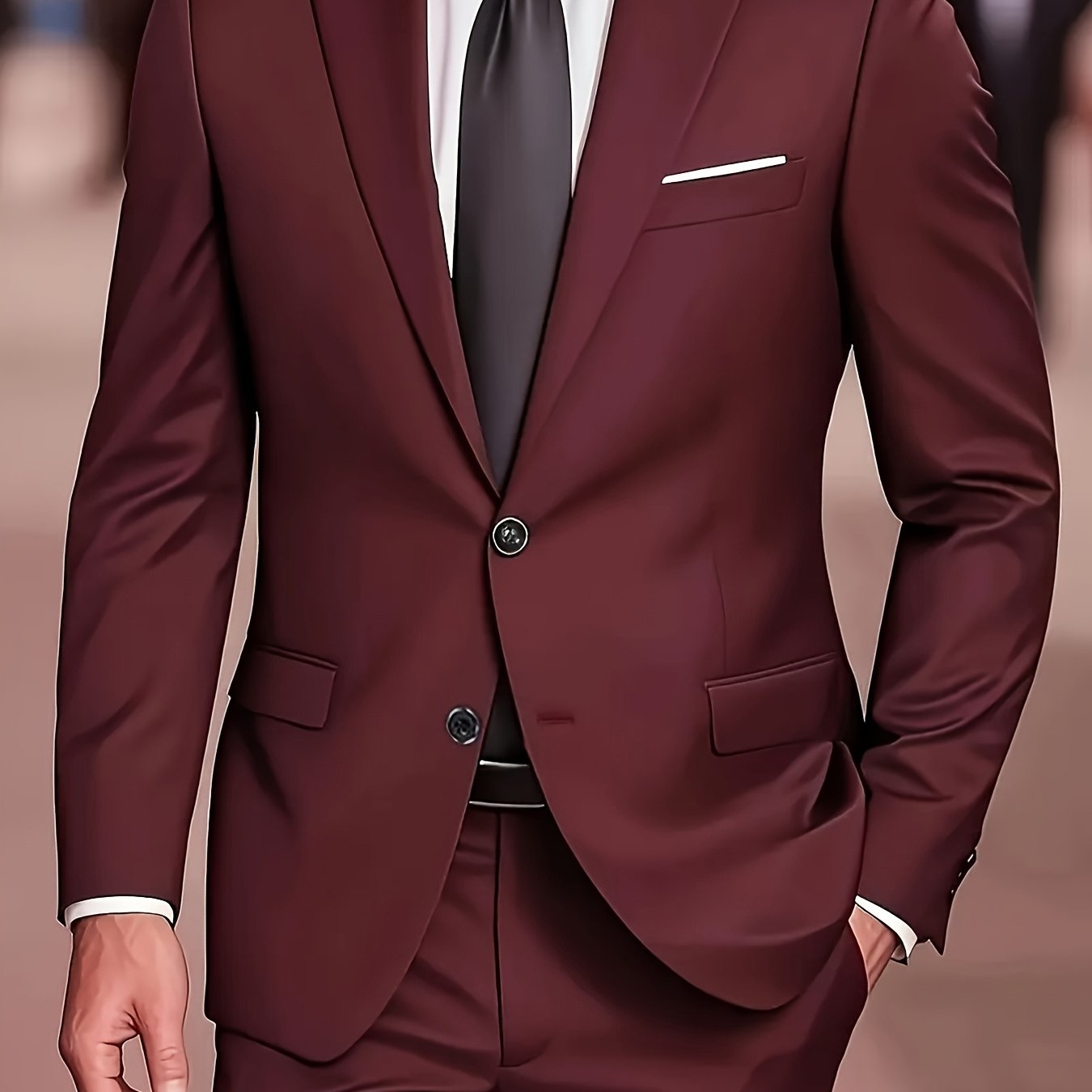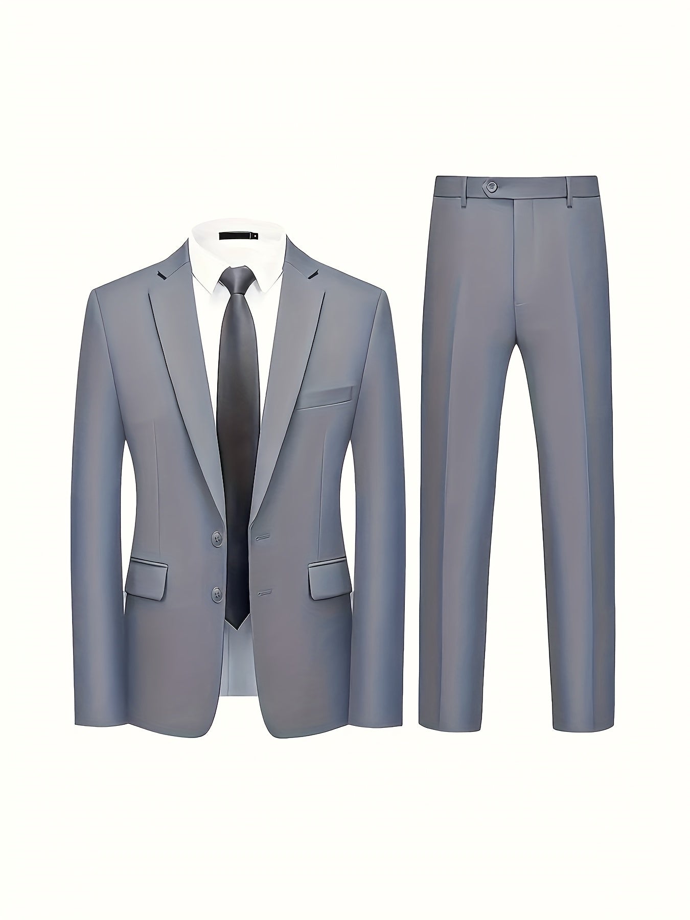 Stylish Men's 2pcs Suit Set - Blazer & Trousers for Formal Events