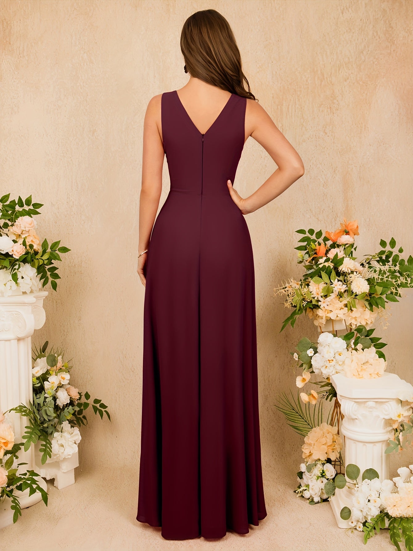 ANN ANN Elegant Red Holiday Dress - Glossy Finish & High Slit