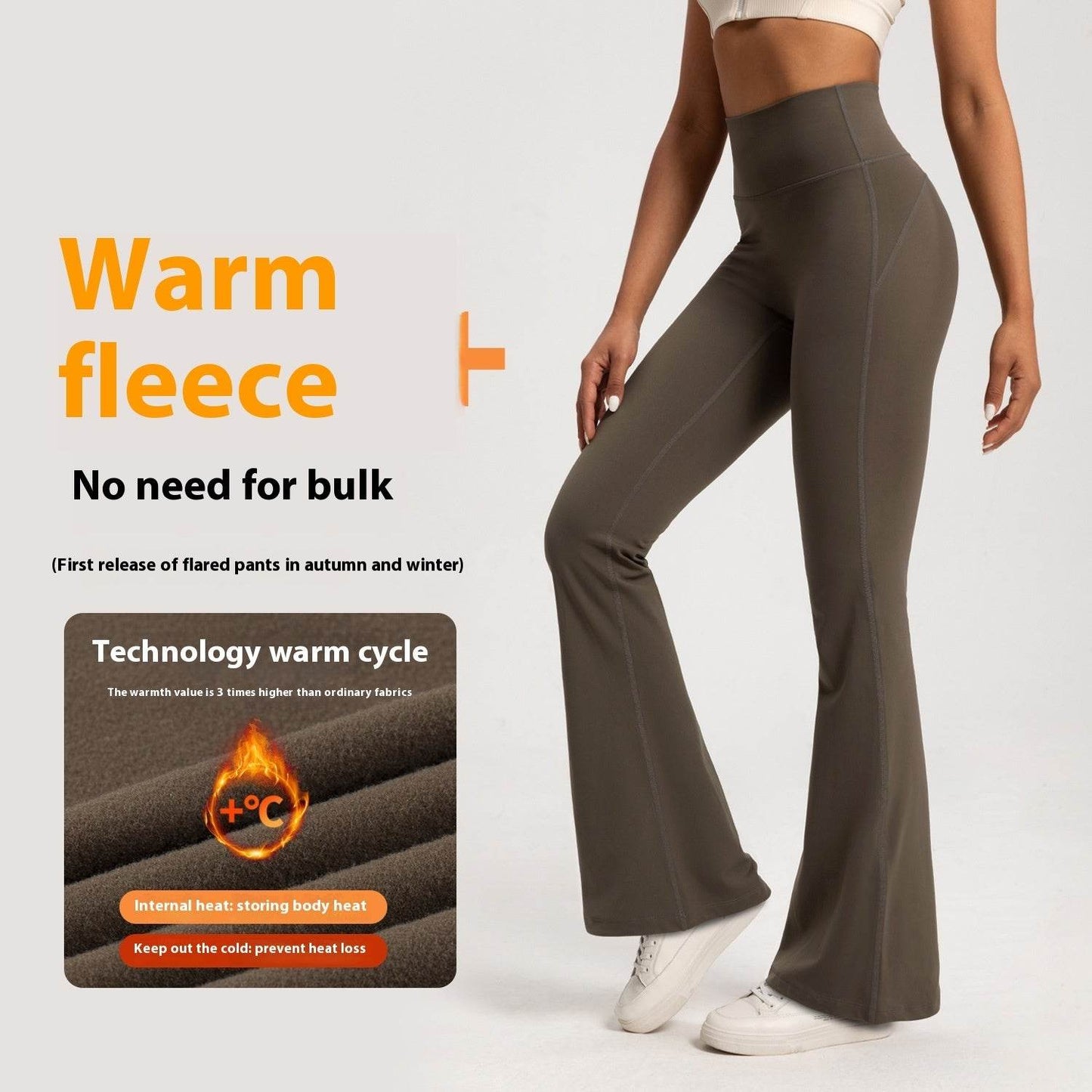 Fleece-Lined High Waist Bell-Bottom Pants - Stylish Wide Leg Design