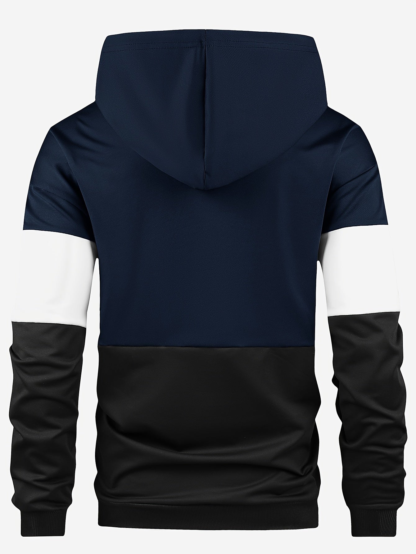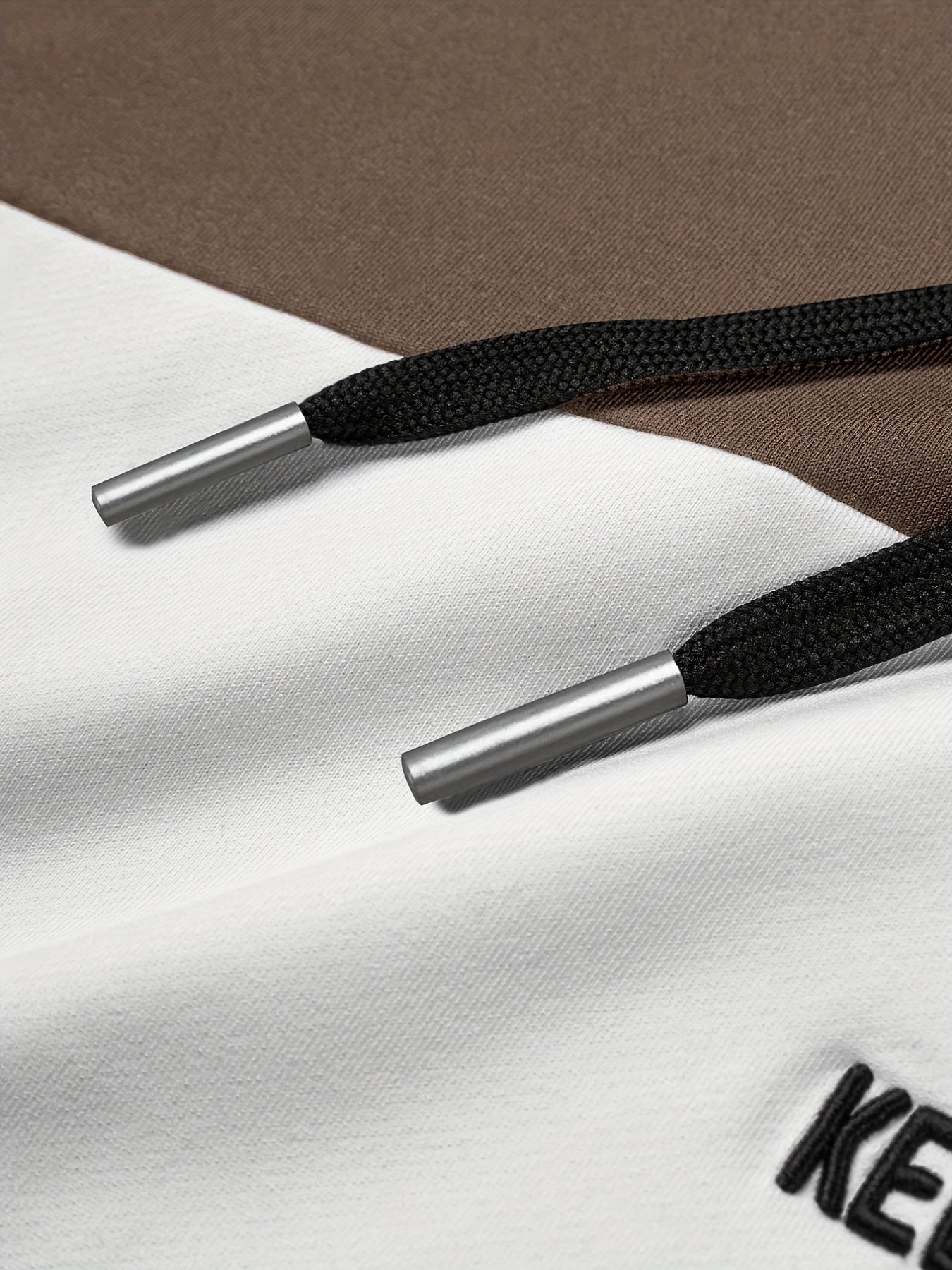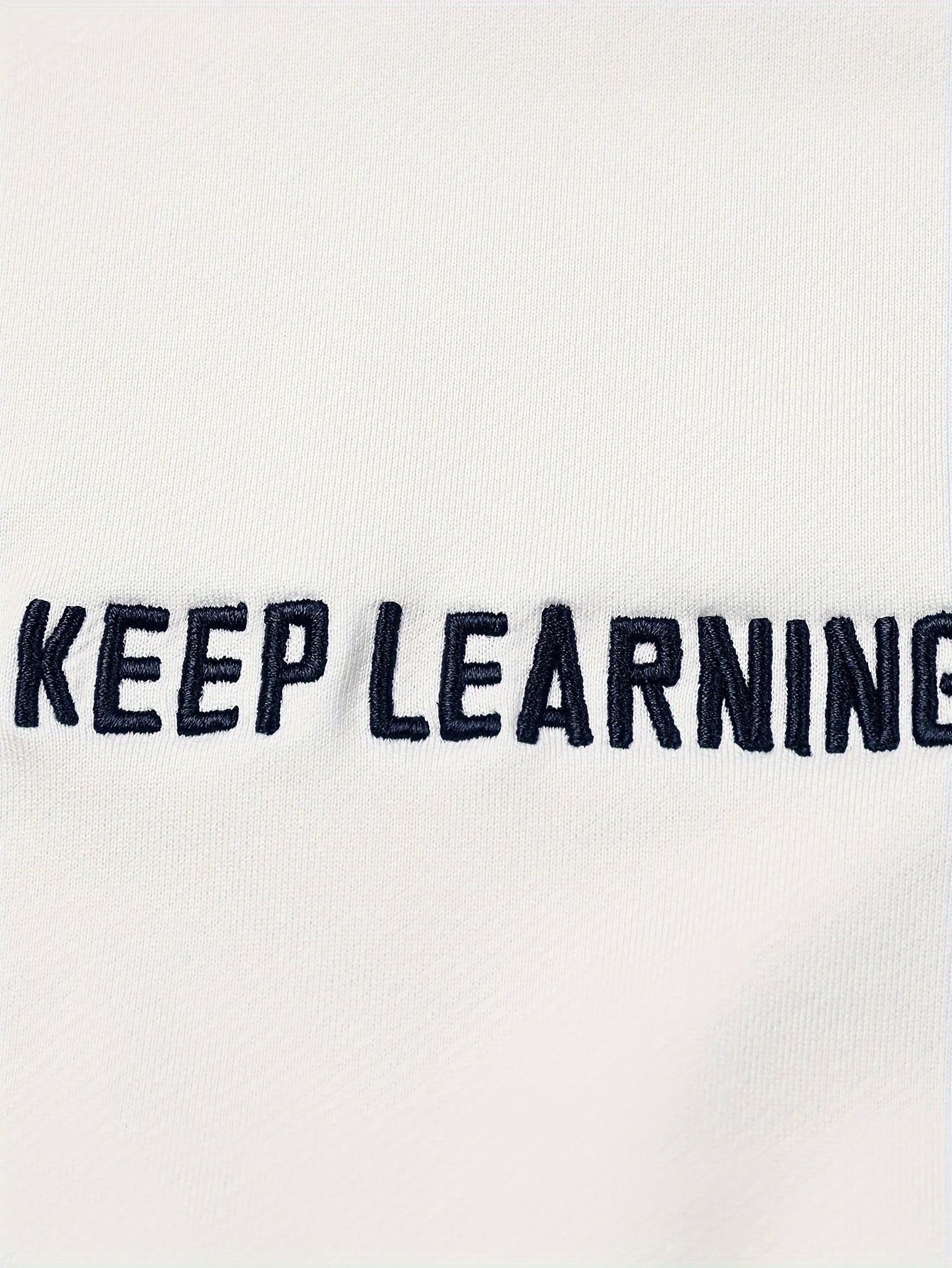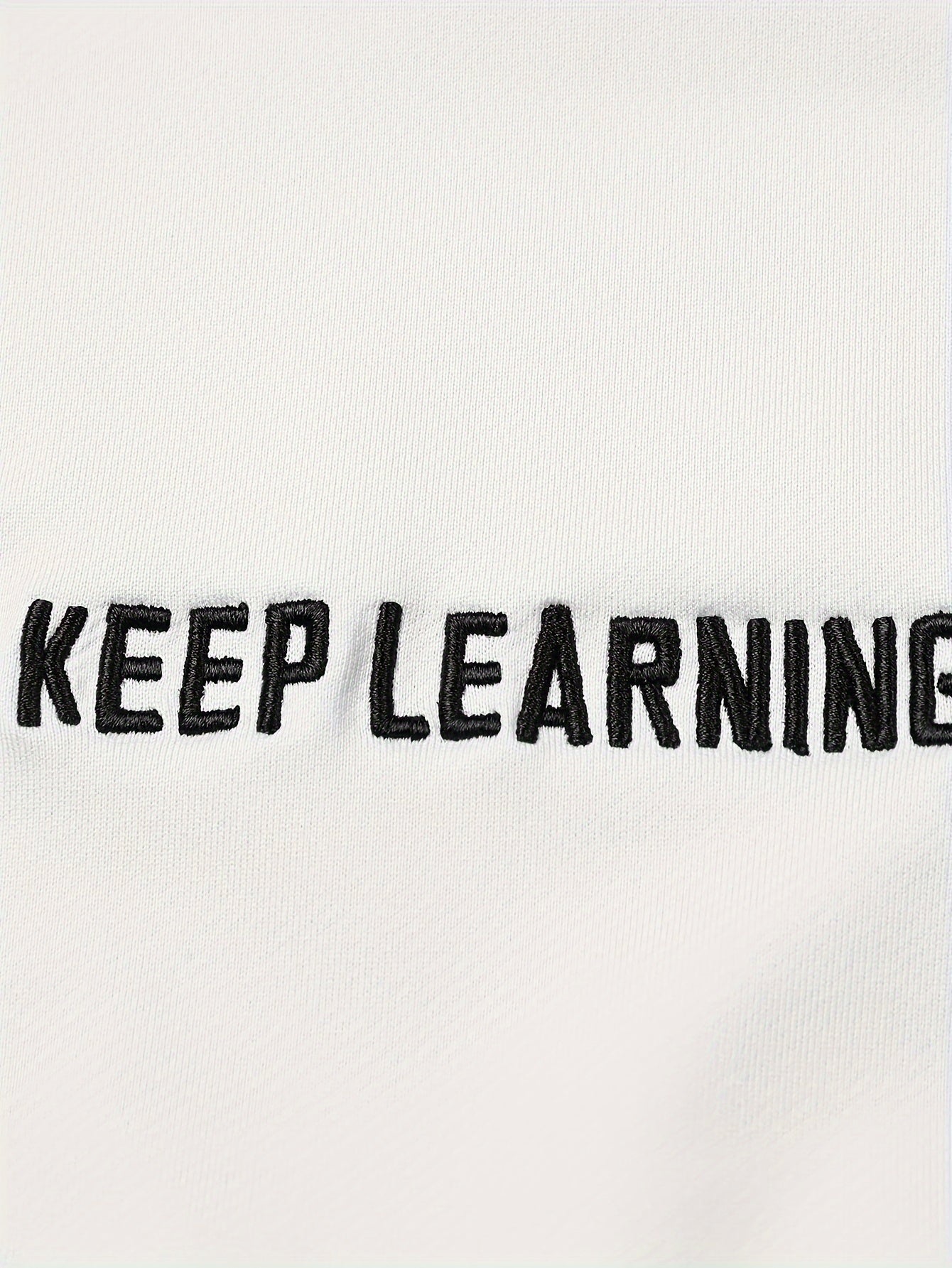 ‘Keep Learning’ Print Patchwork Hoodie, Hoodies For Men, Men’s Casual Pullover Hooded Thin Sweatshirt With Kangaroo Pocket For Spring Fall, As Gifts