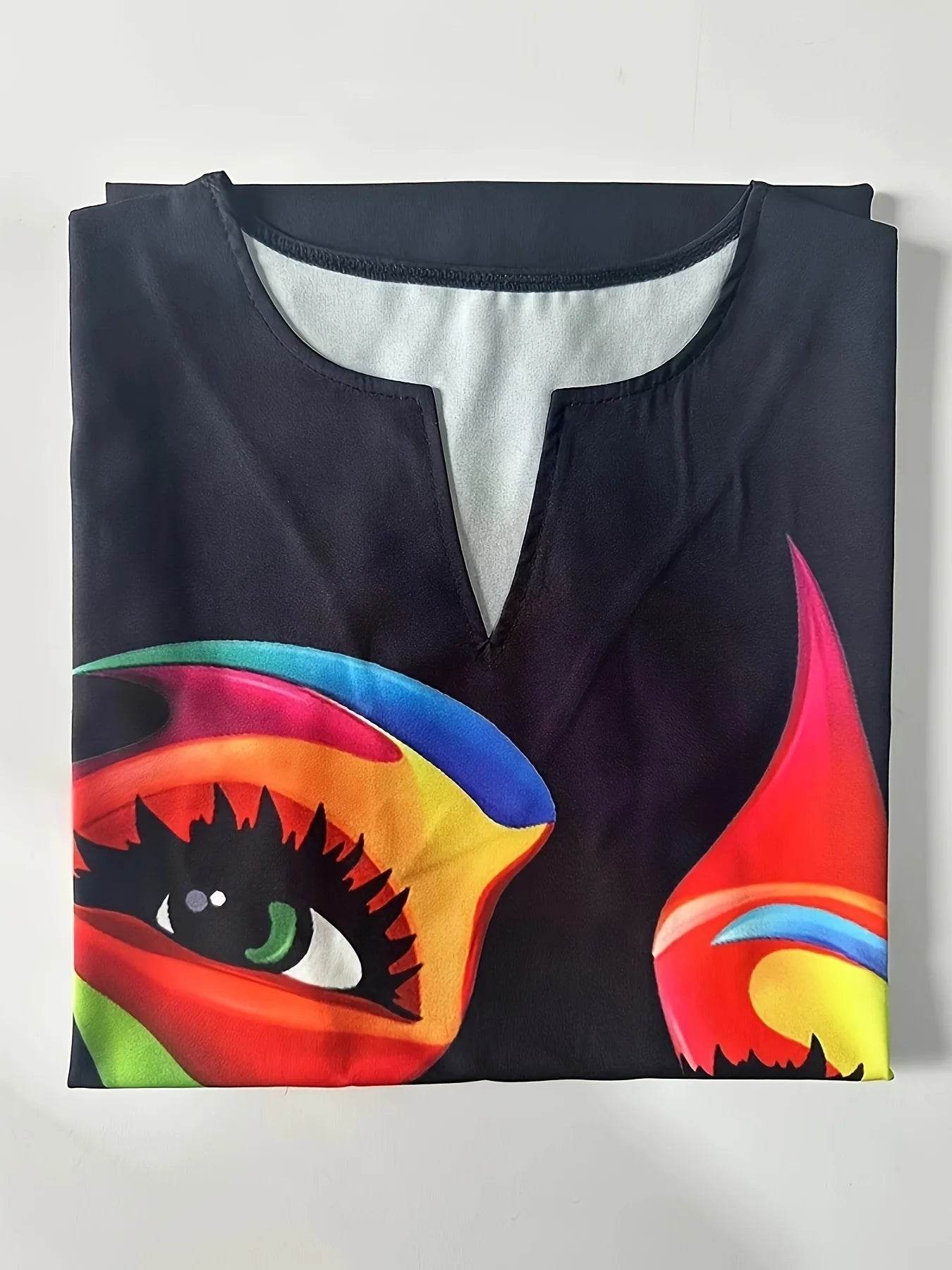 Women's Plus-Size Casual Dress - Elegant V-Neck Feather Print