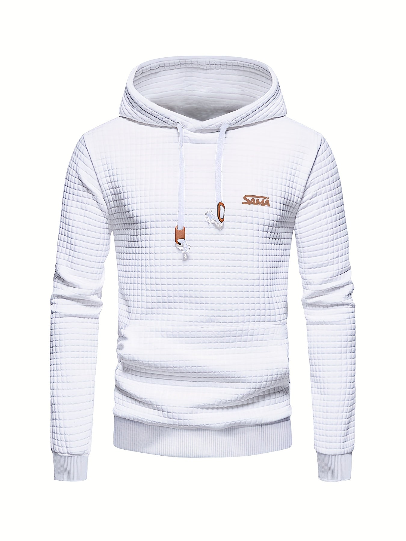 Men'S Athletic Hooded Sweatshirt, Polyester 95% Elastane 5%, Four Seasons Knit Fabric, Medium Stretch, Regular Fit, Printed Sports Style with Applique Detail, 230g/m²