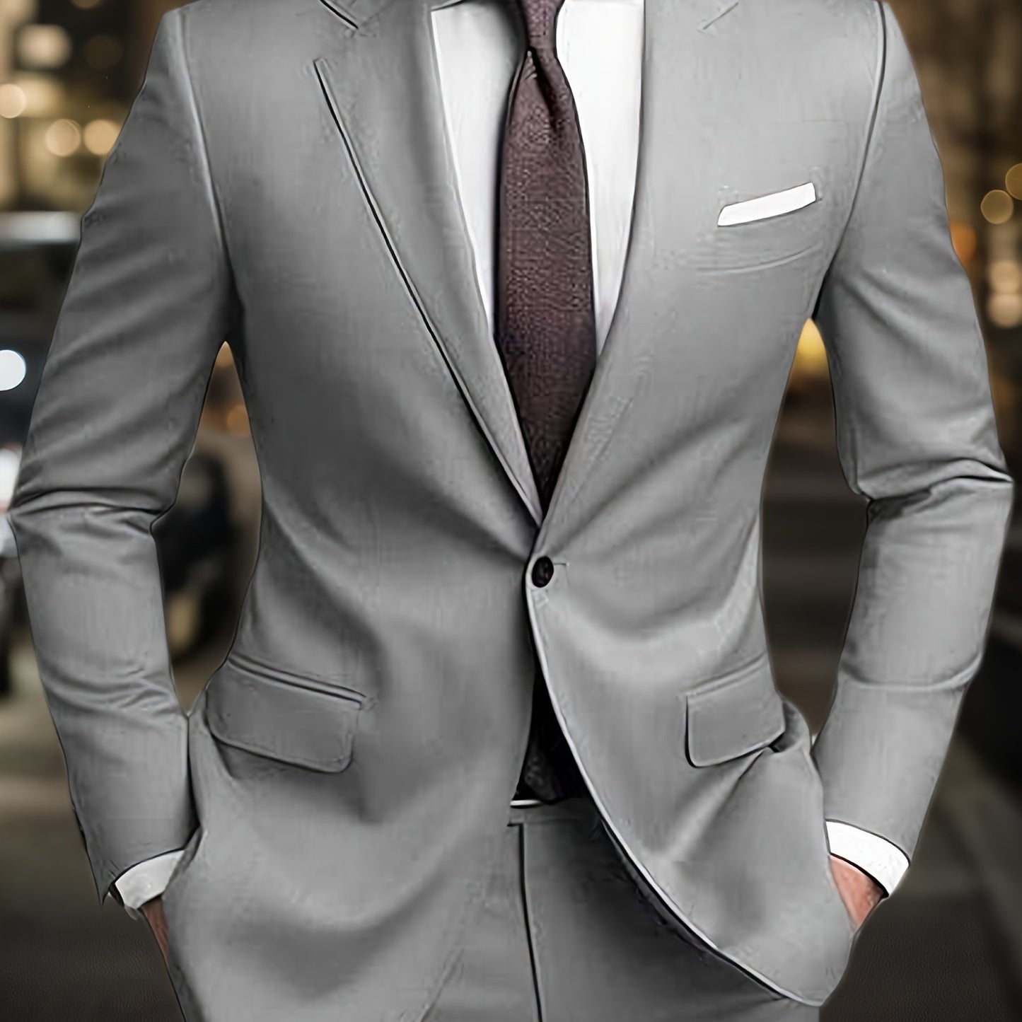 Men's 2pcs Suit Set - Non-Stretch Fabric for Weddings & Business Gatherings