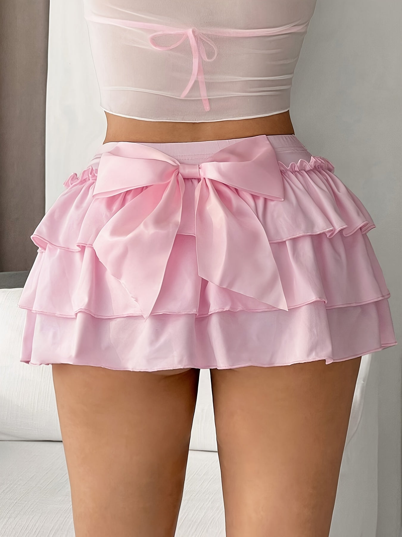 Y2K Pink Layered Ruffle Skirt - Back Bow Detail for Women
