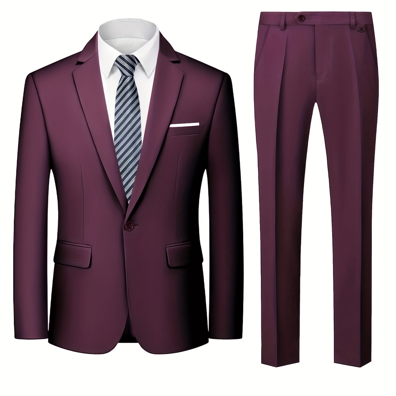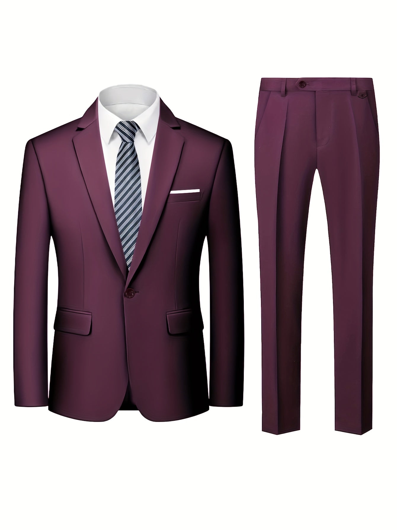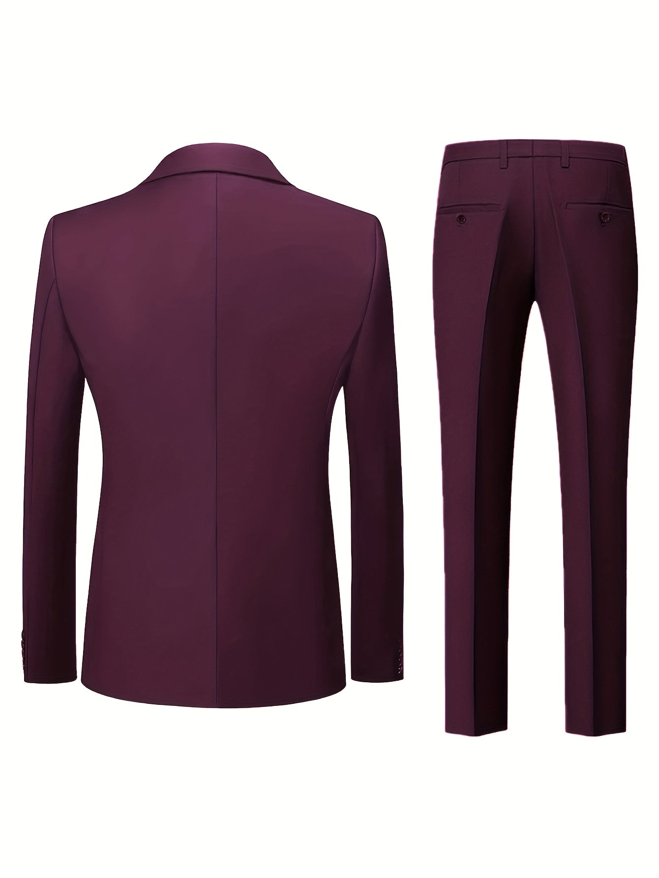 Men's Solid Color Business Suit Set - Notch Lapel Blazer & Trousers