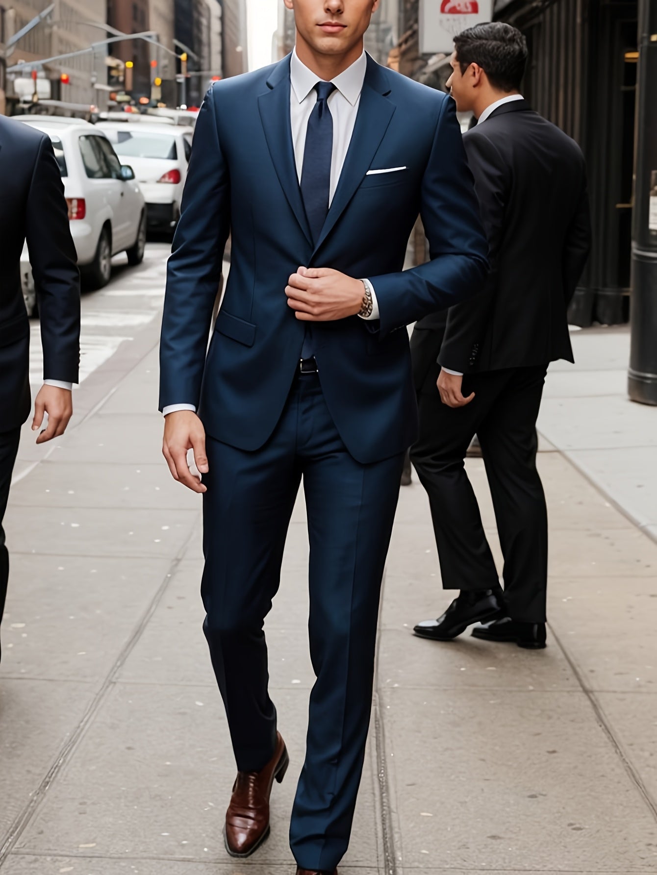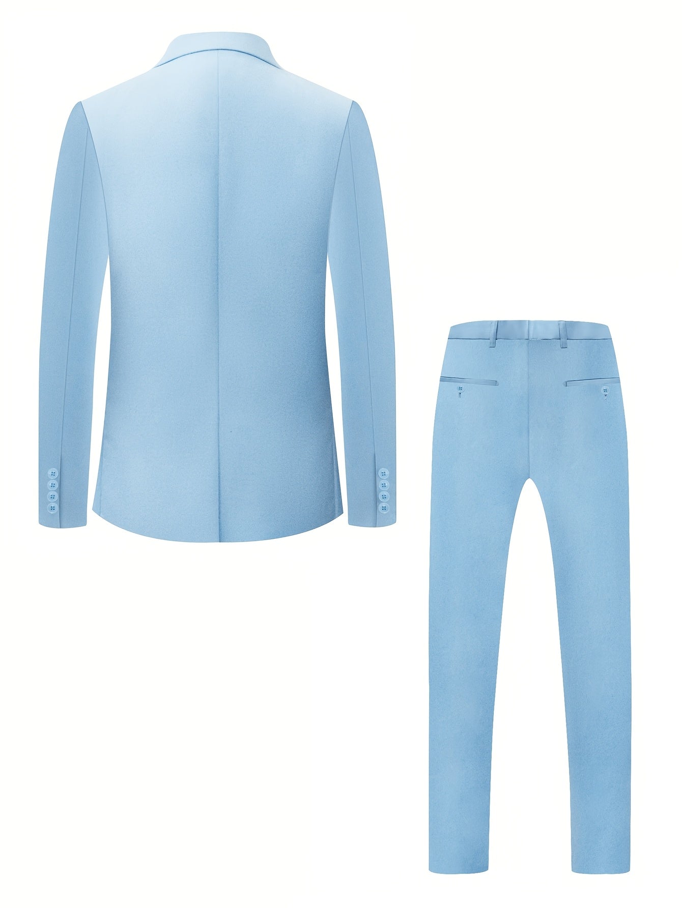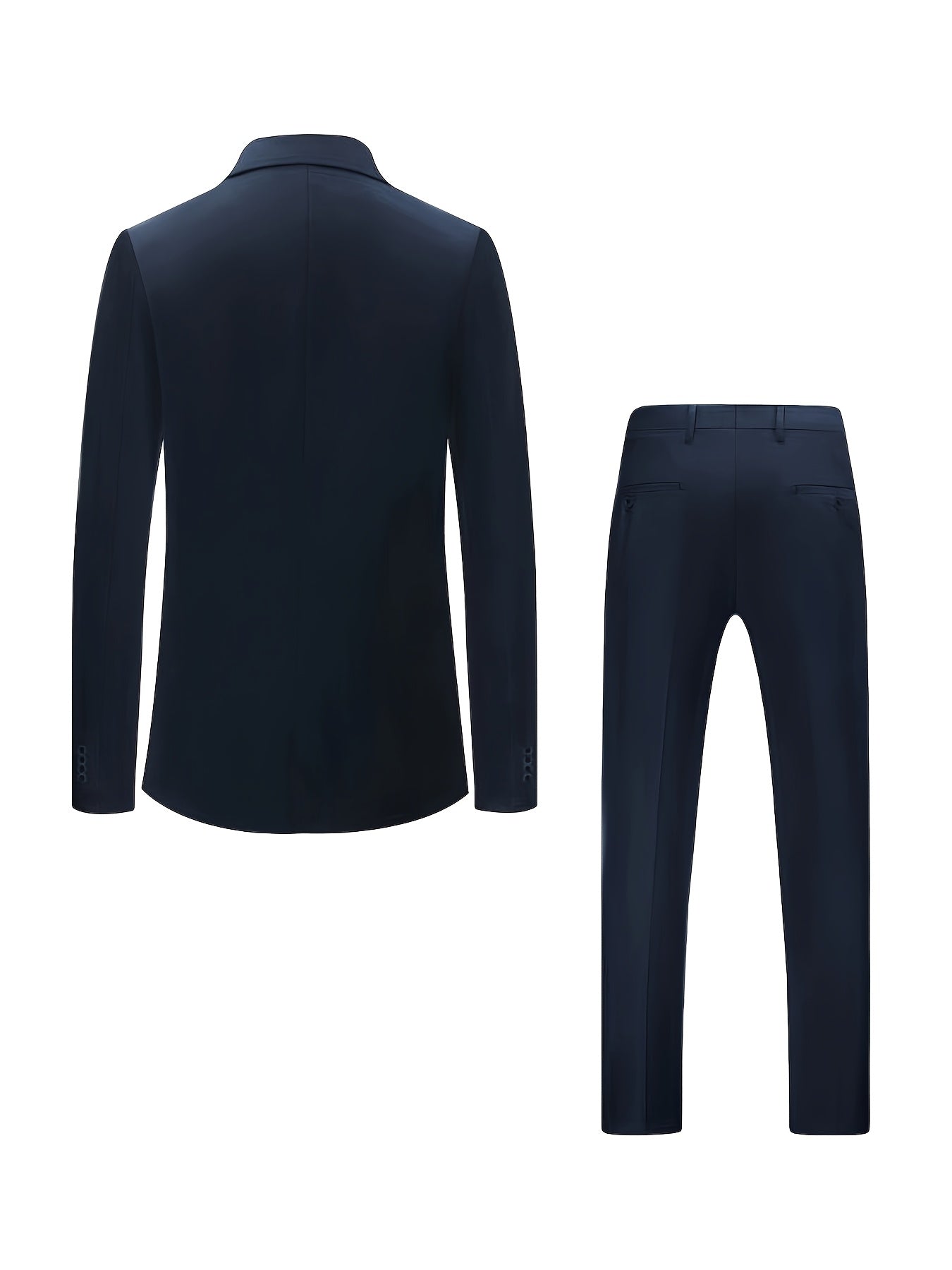 Men's Solid Color Business Suit Set - Notch Lapel Blazer & Trousers