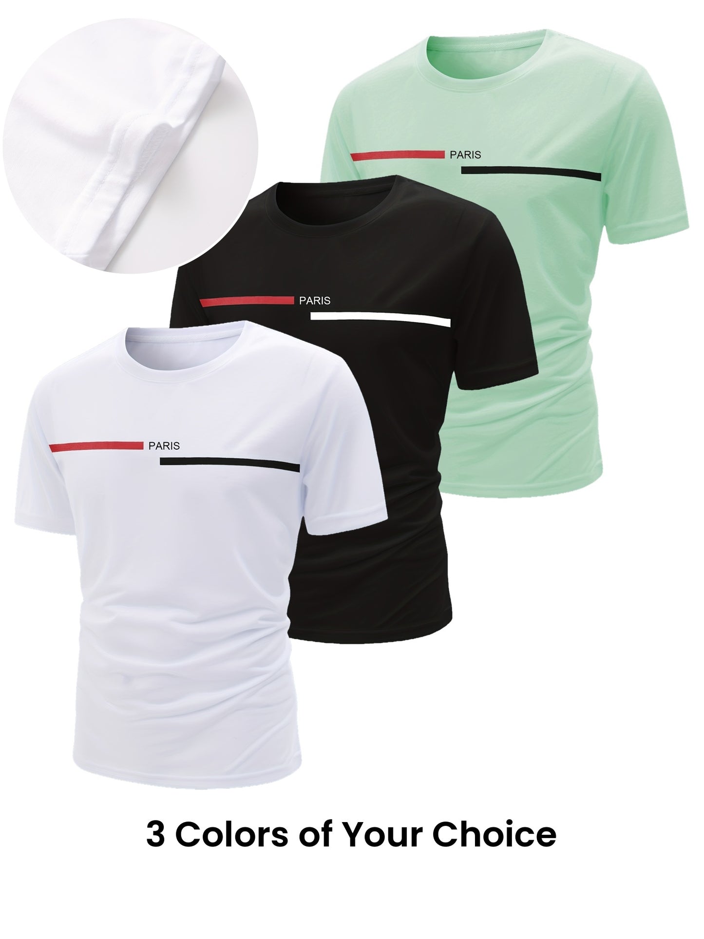Men's Casual Crew Neck T-Shirt - Alphabet Print, All-Season Style