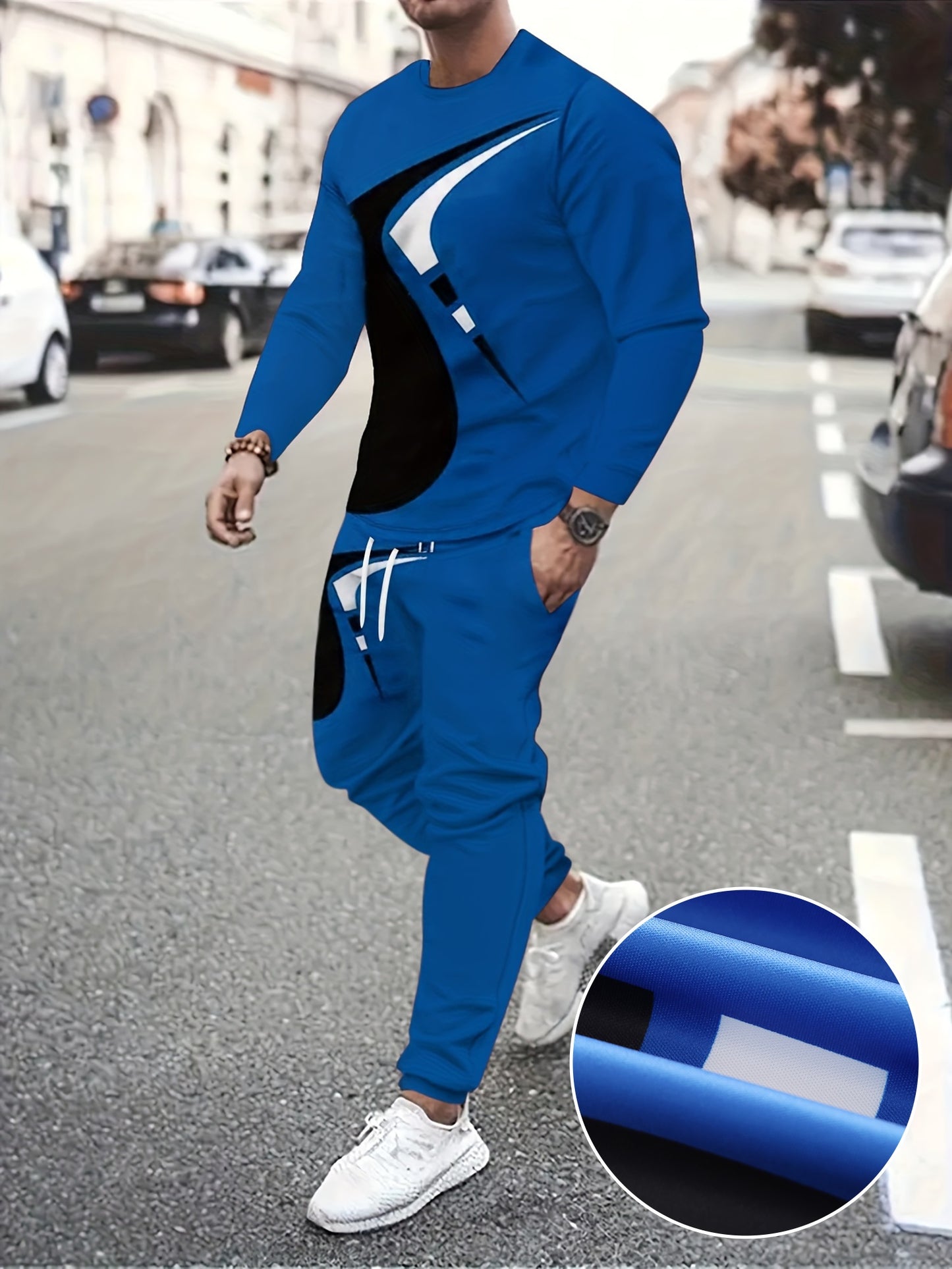 Men's 3D Curved Print Sports T-Shirt - Casual Style, Regular Fit
