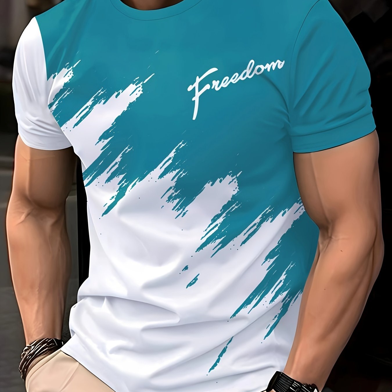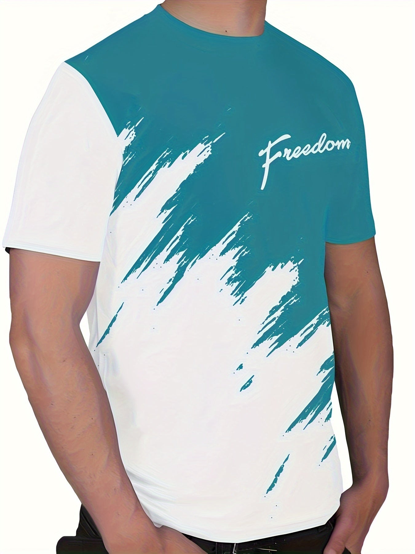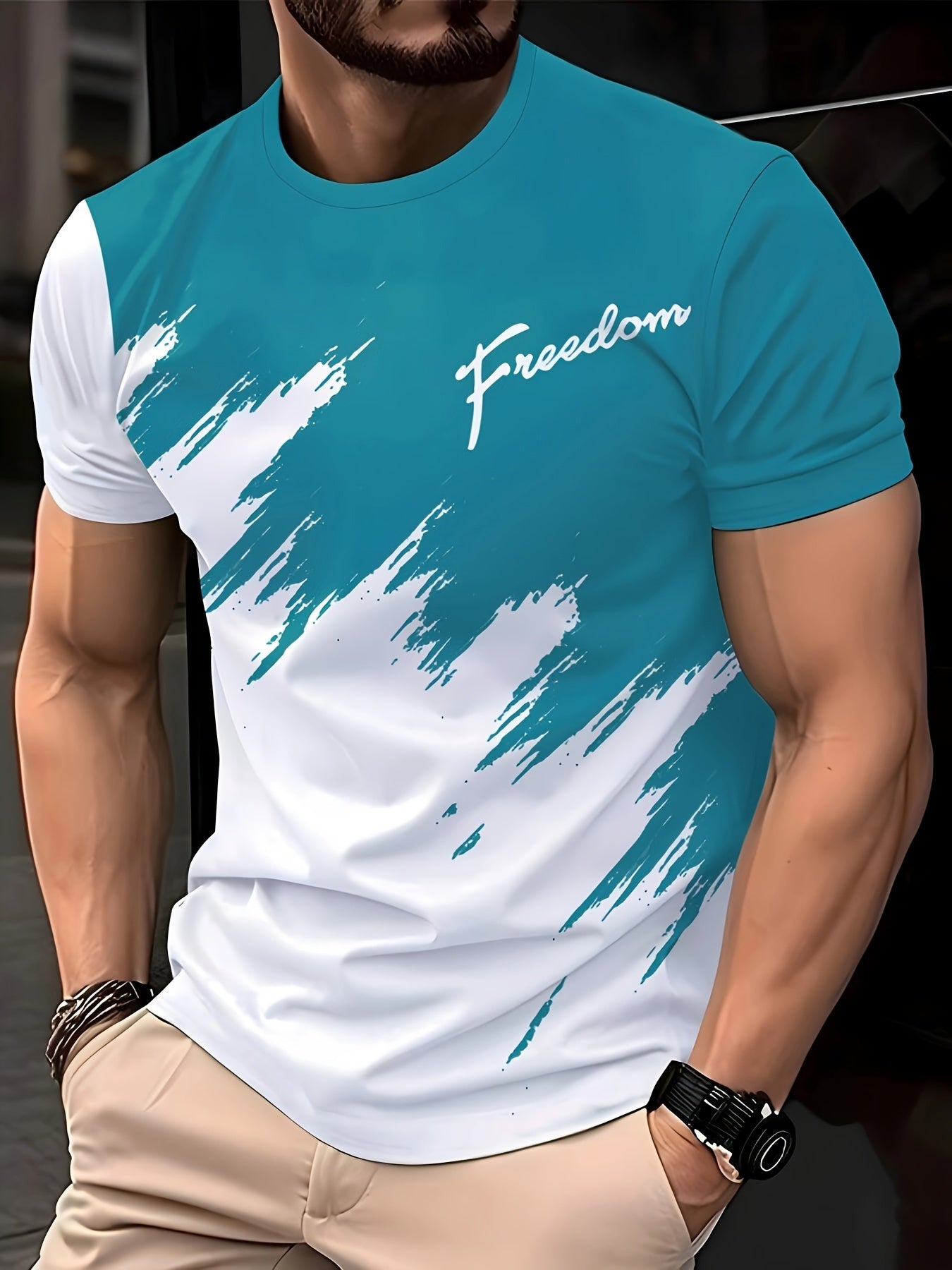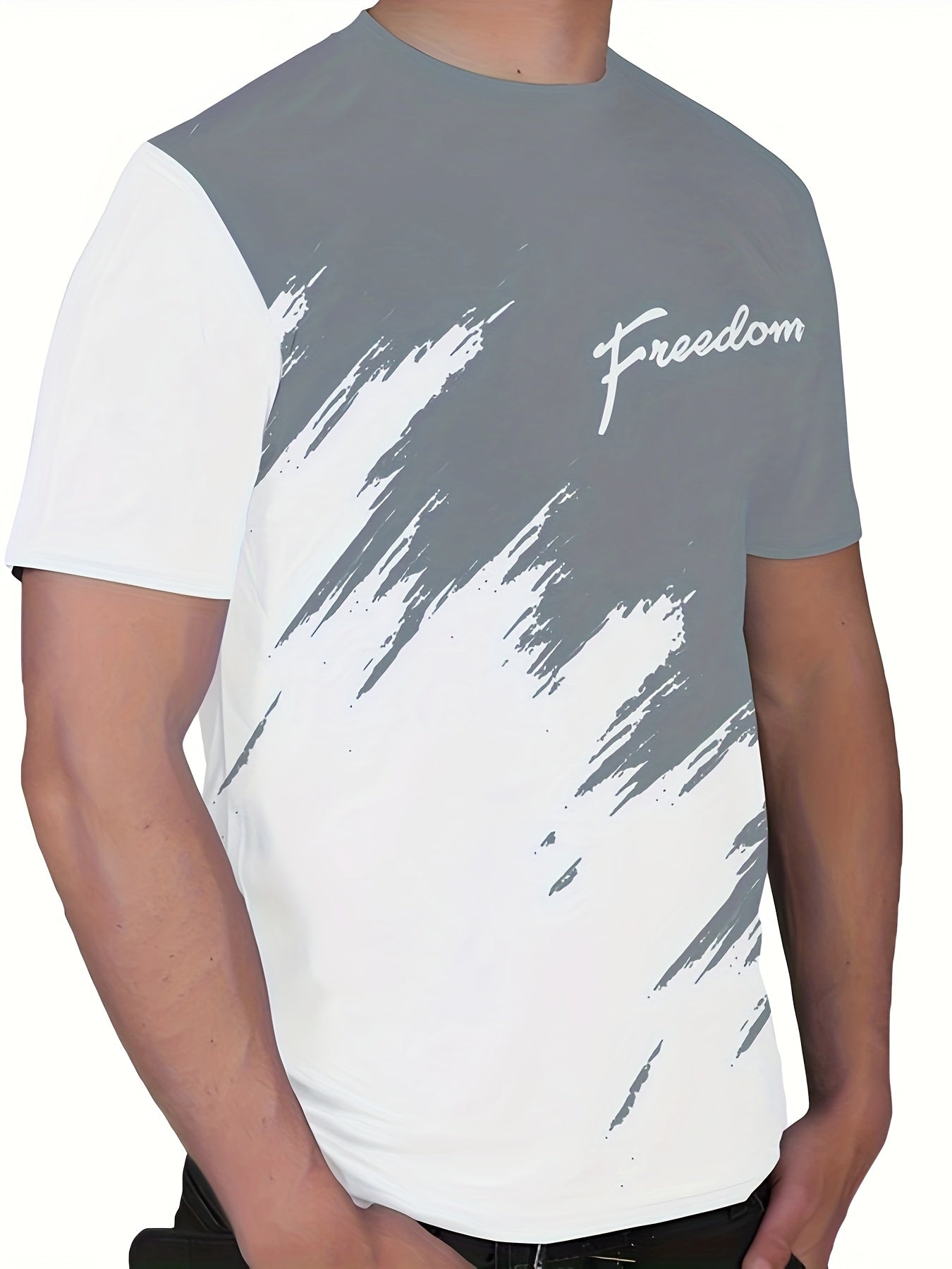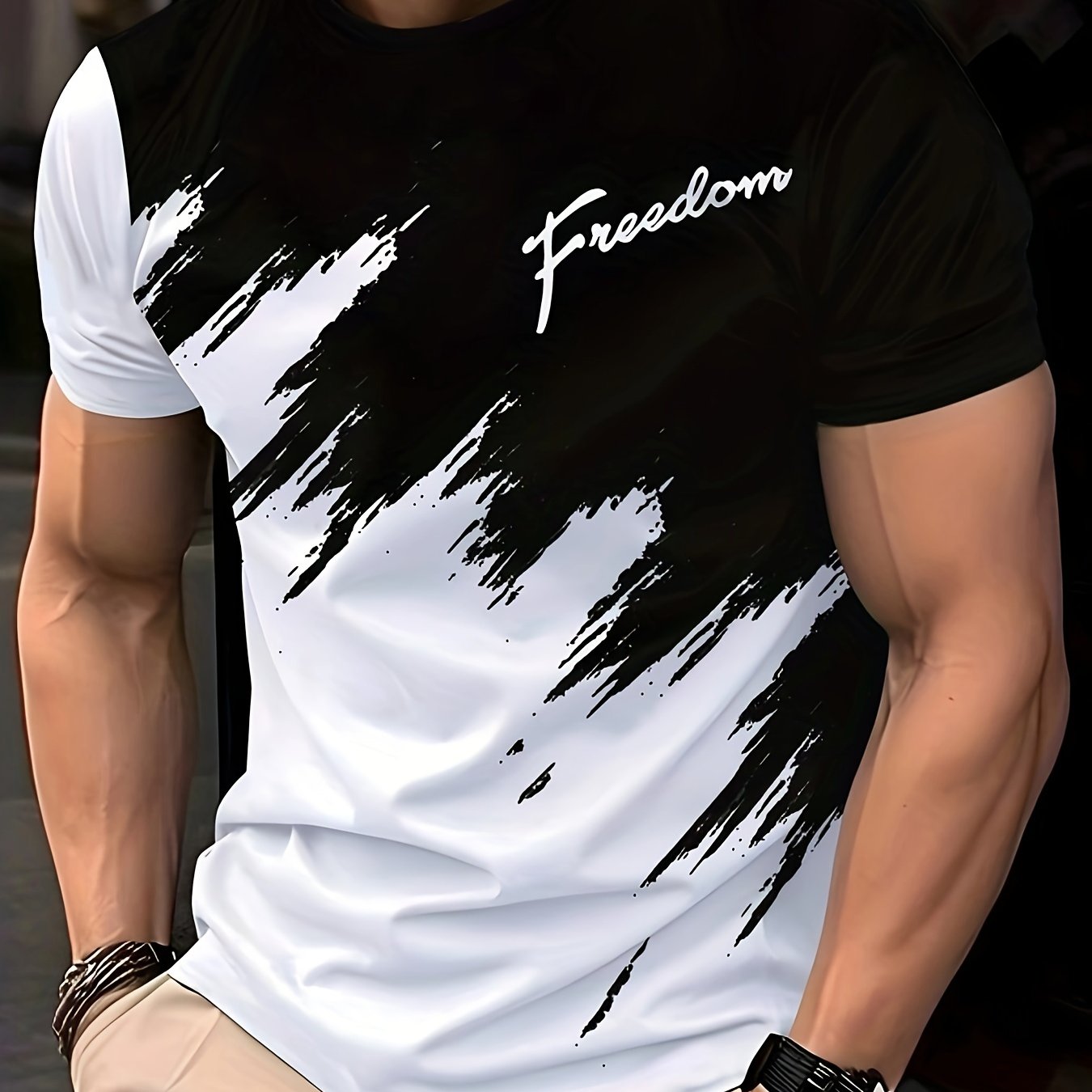 Discover the ultimate blend of style and comfort with our Men's Casual Graphic T-Shirt featuring a striking geometric print and the empowering 'Freedom' script. Made from high-quality polyester, this lightweight round neck tee is perfect for casual attire and is designed for everyday wear.