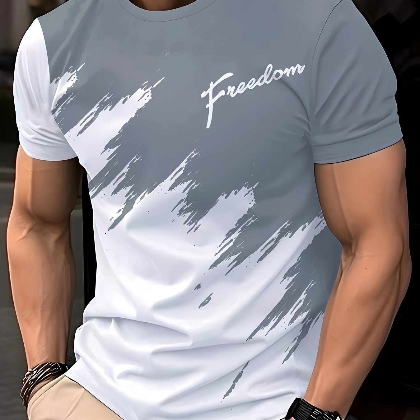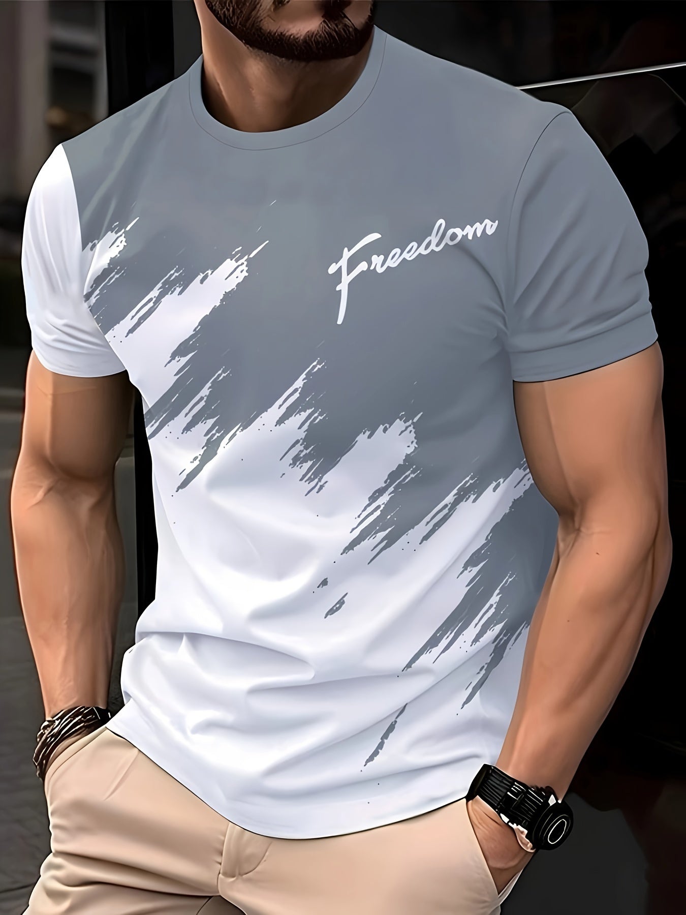 Men's Casual Graphic T-Shirt - Geometric Print & 'Freedom' Script