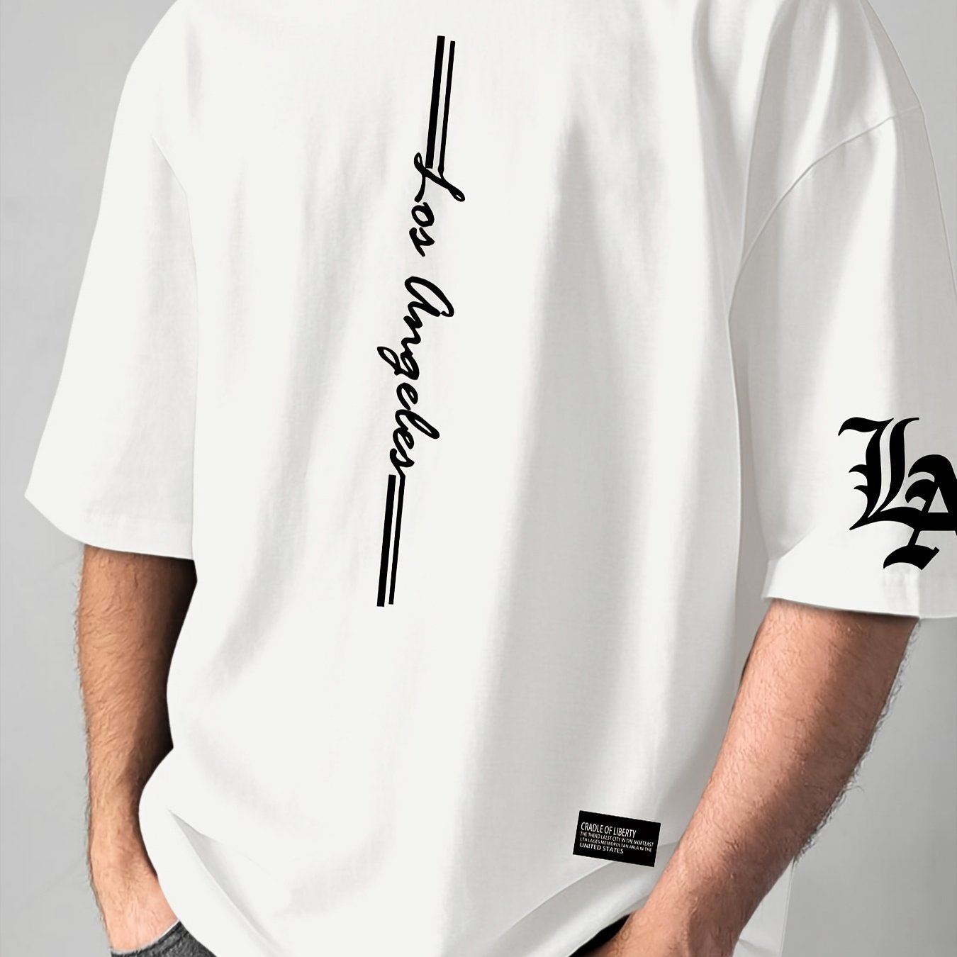 Men’s Summer “LA” Print T-Shirt - Loose Fit, Casual Style for Sports