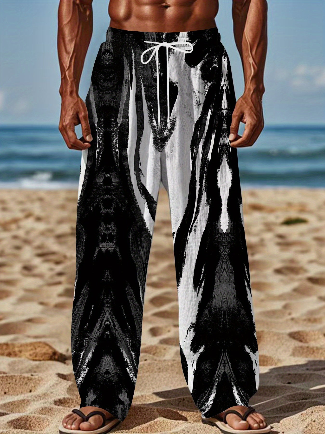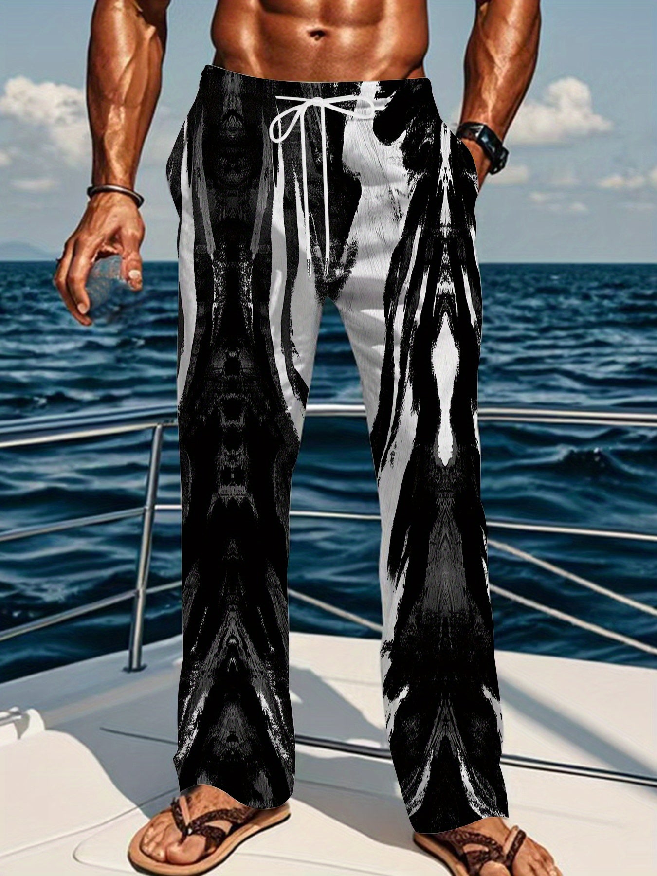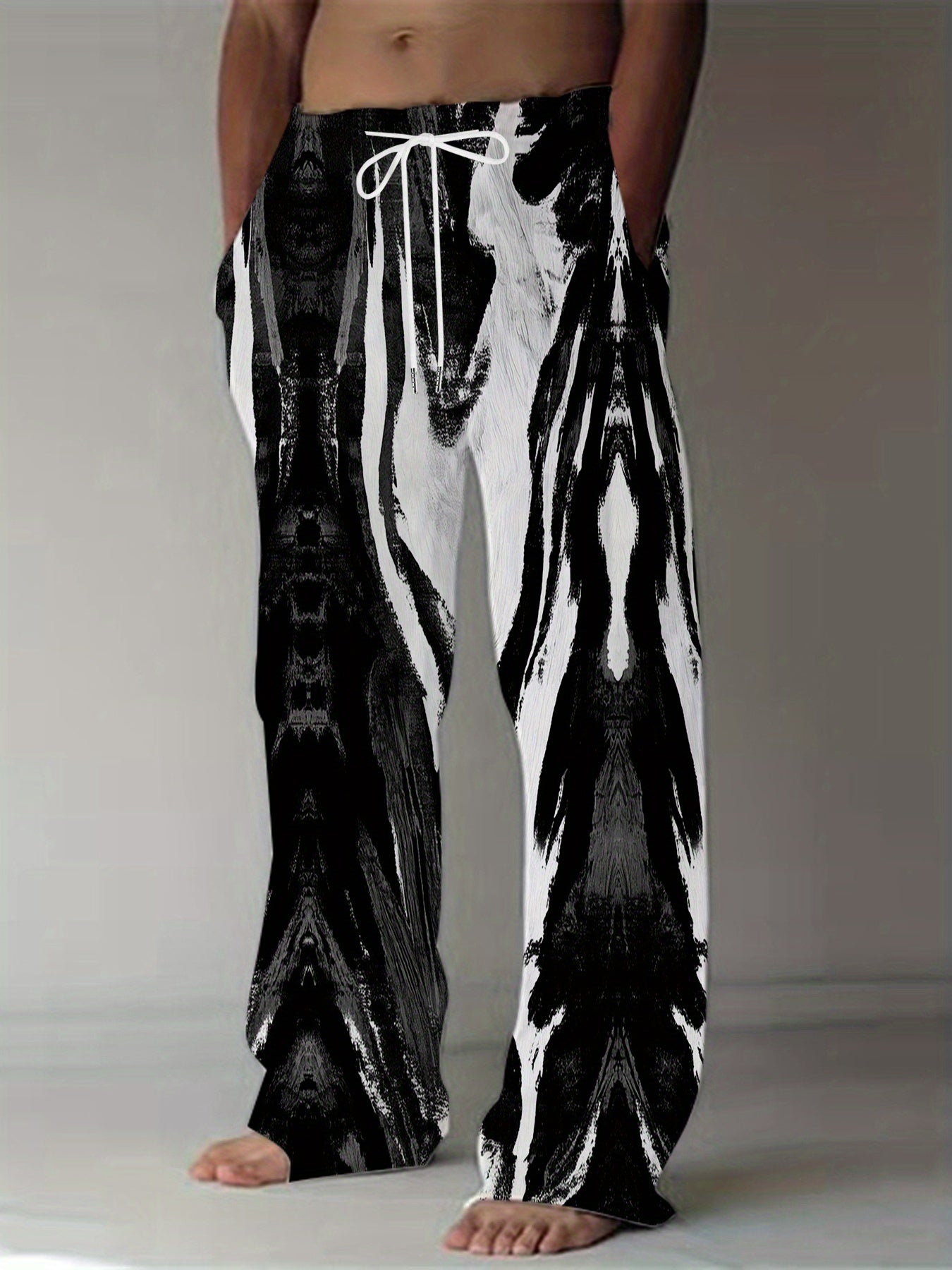 Men's Loose-Fit Straight-Leg Pants - Geometric Print, Casual Style