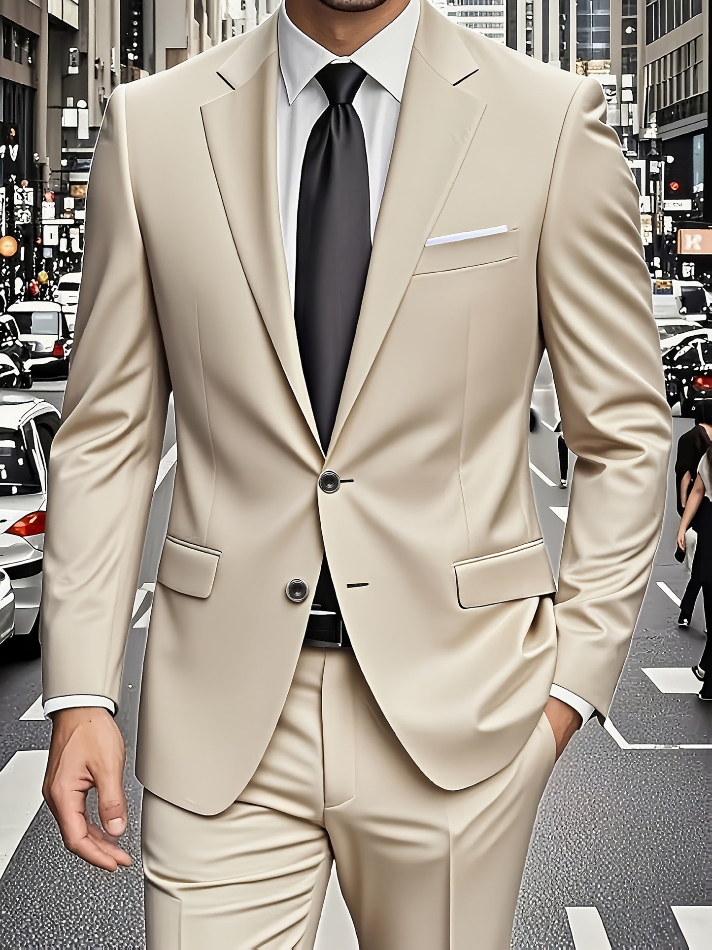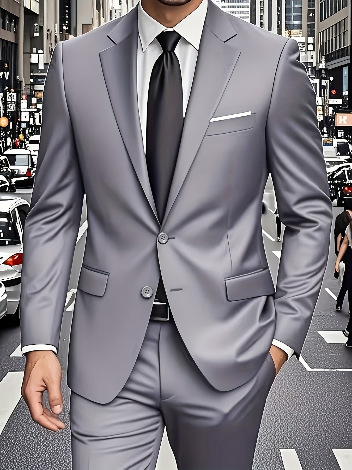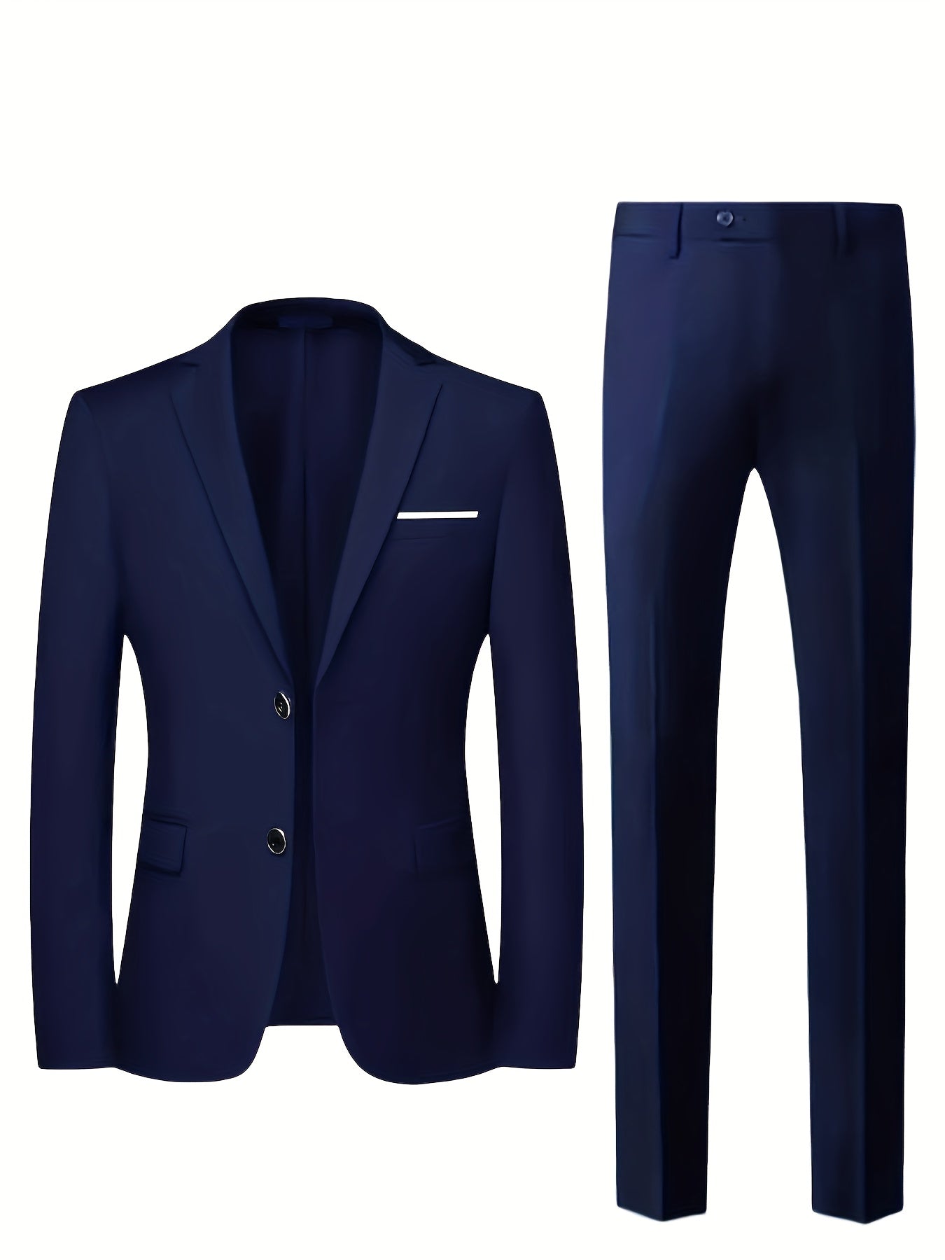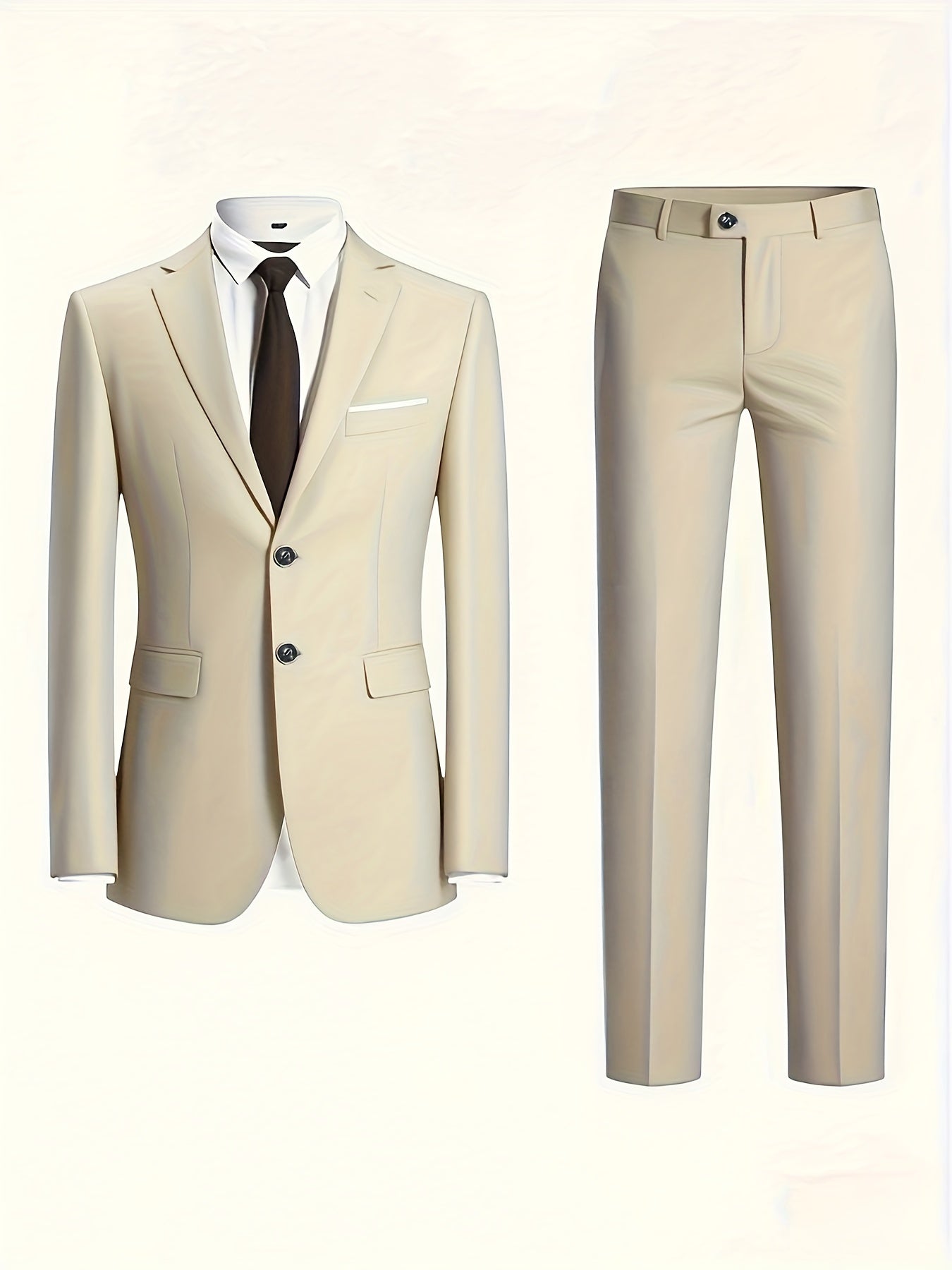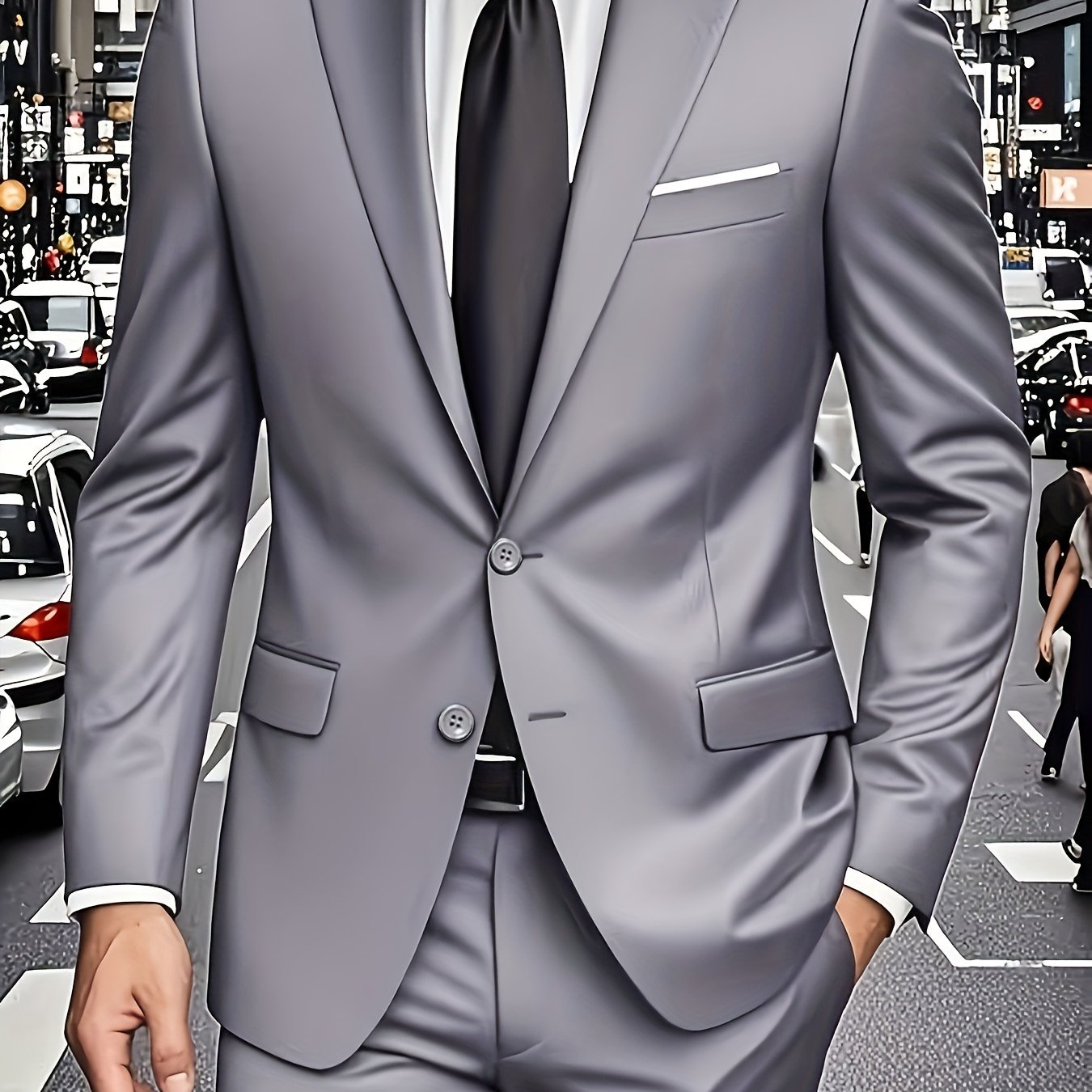 Men's Casual Two-Piece Suit Jacket and Pants Set - Perfect for Weddings