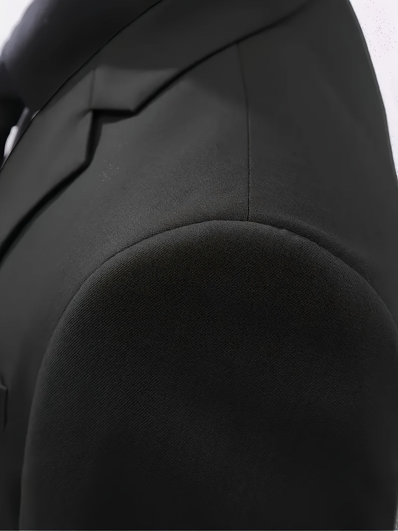 - Features a classic lapel collar and long sleeves for a polished appearance