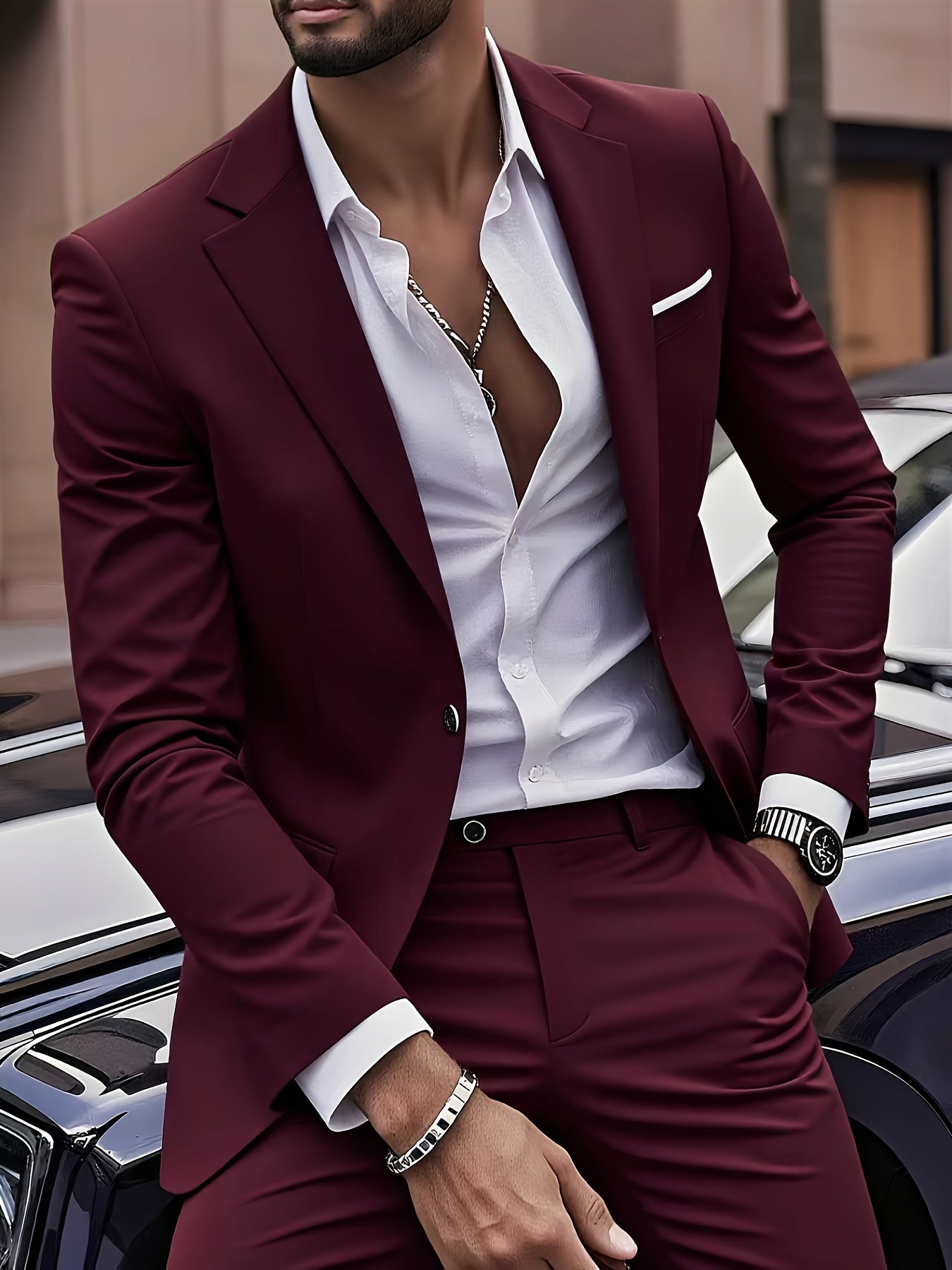 Discover a blend of sophistication and style with our Men's Suit 2pcs Set. Whether you're attending a formal event or an important business meeting, this fashionable ensemble makes a bold statement. The meticulously designed suit features long sleeves and a sleek silhouette that flatter any figure. Choose this suit for a polished look that is both memorable and versatile, making it an essential addition to your wardrobe.