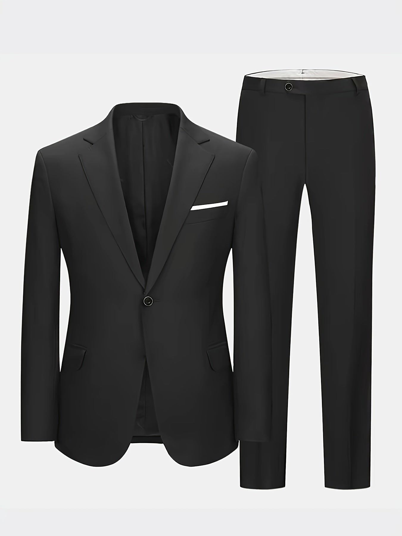 Sleek Formal Men’s Suit 2-Piece Set - Blazer & Trousers for Business