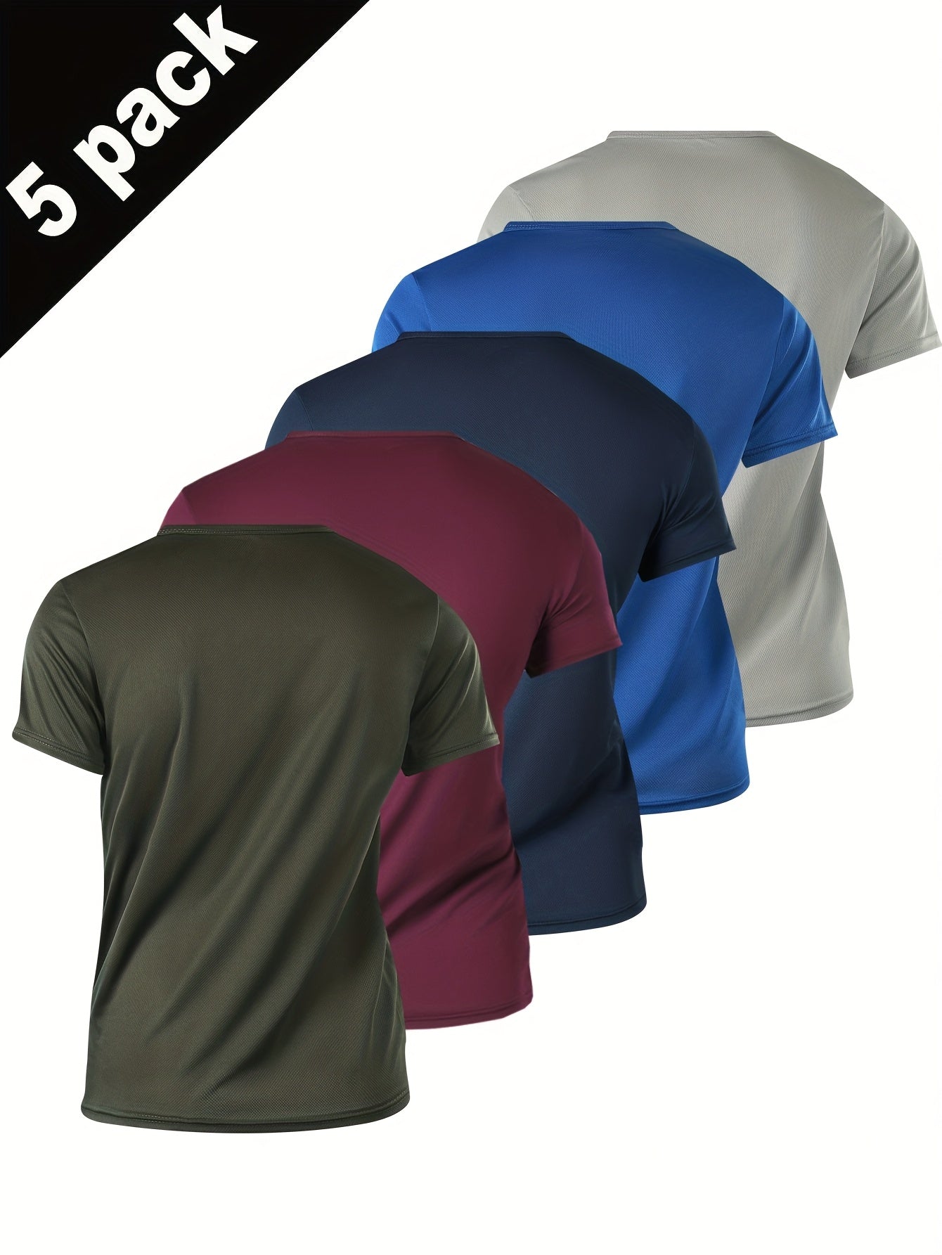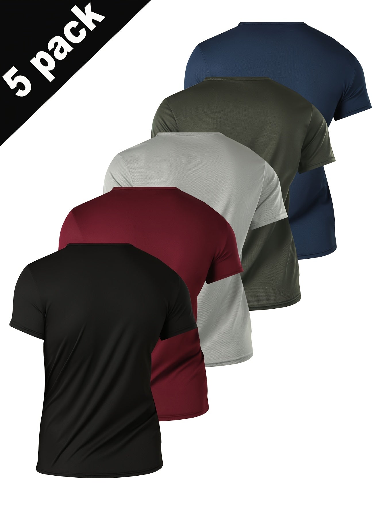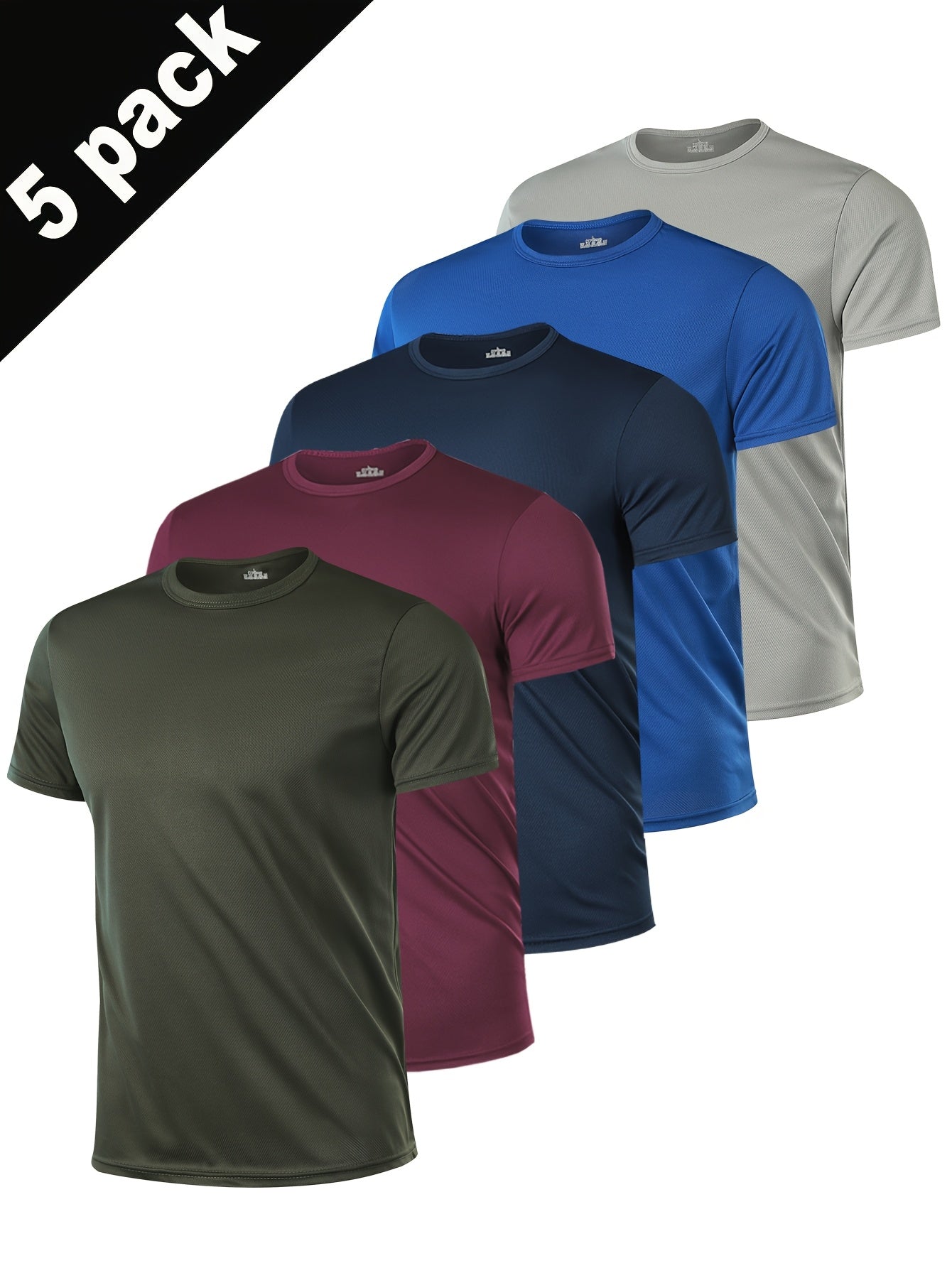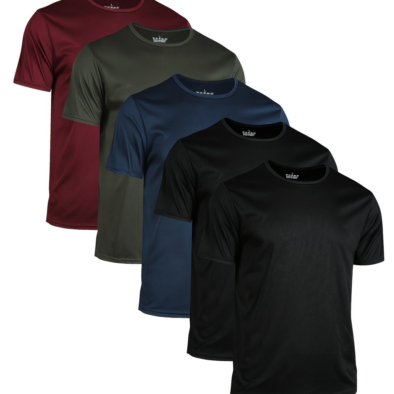 Men's 5-Pack Moisture-Wicking Quick-Dry Crew Neck T-Shirts