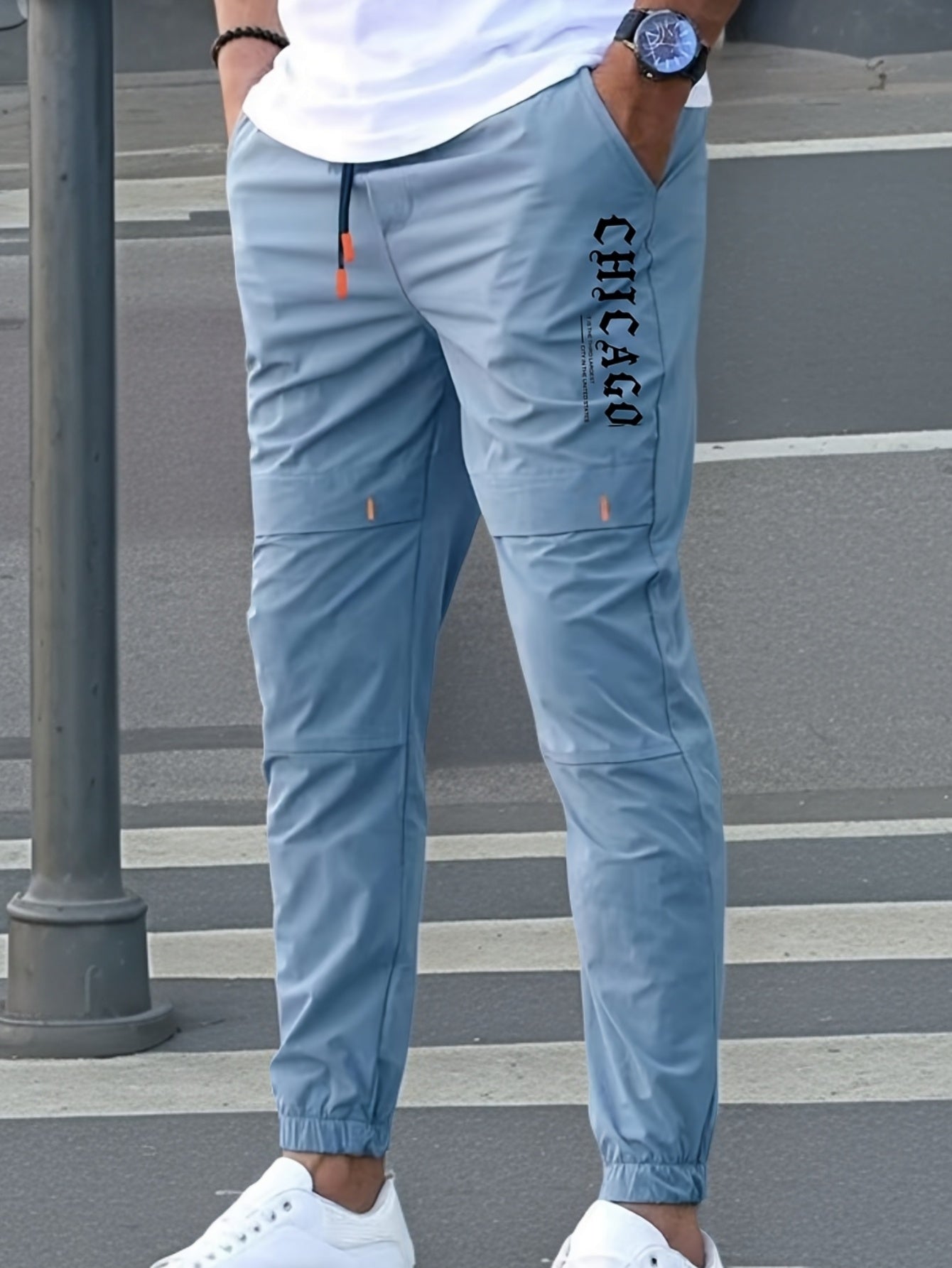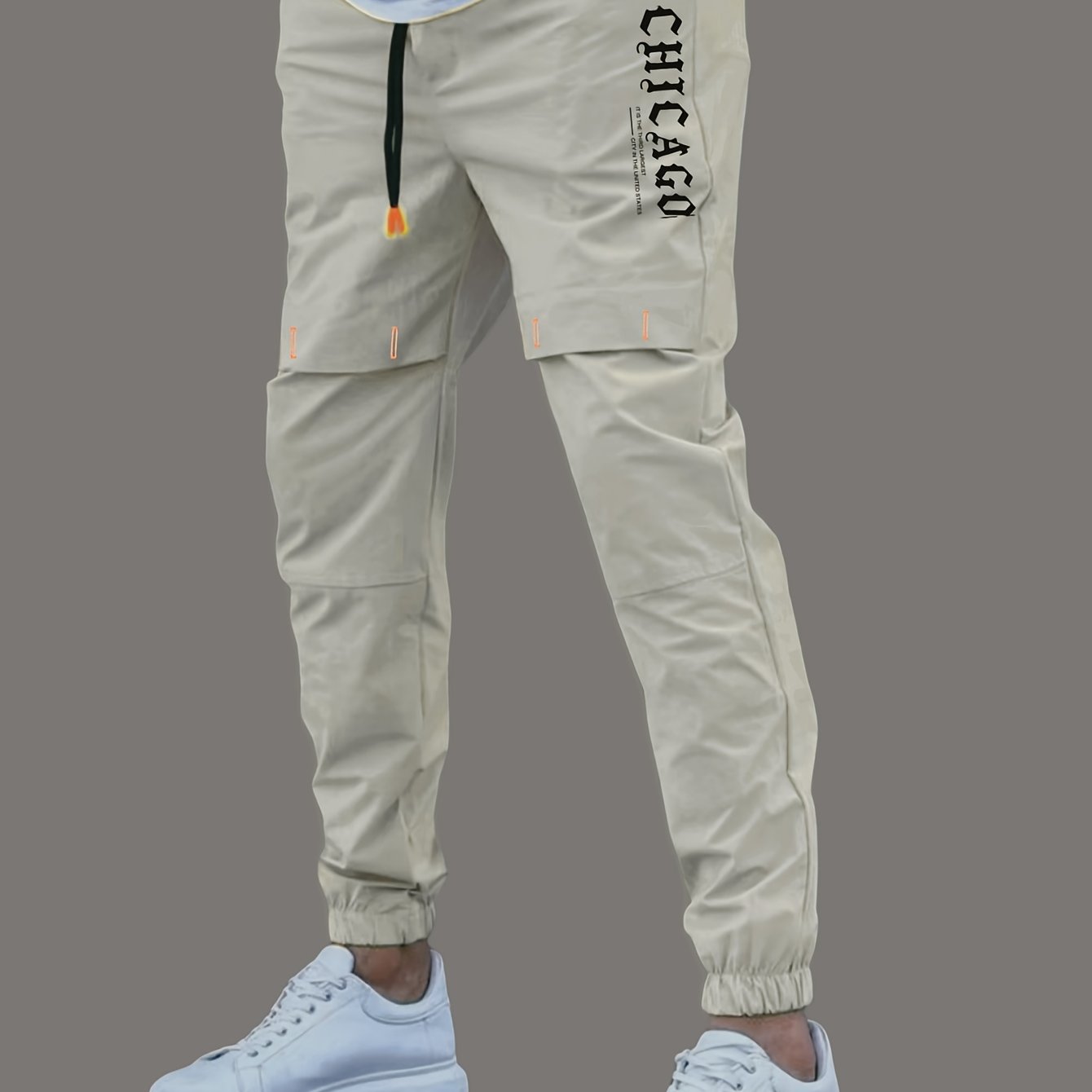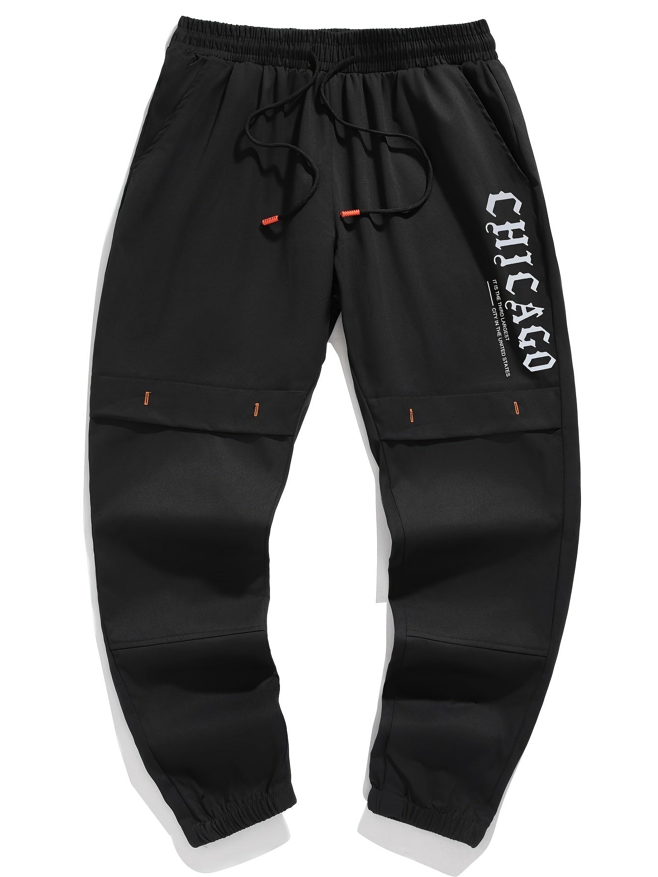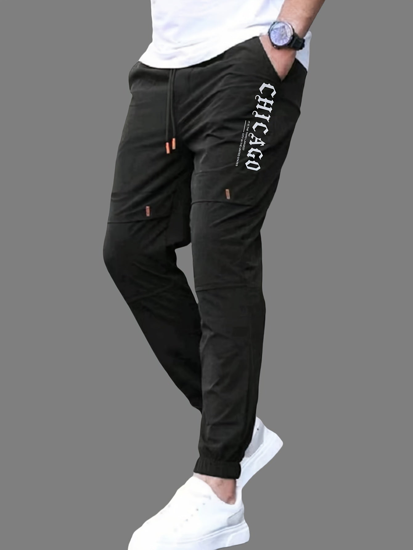 Men's Casual Drawstring Joggers - 100% Polyester, Alphabet Print
