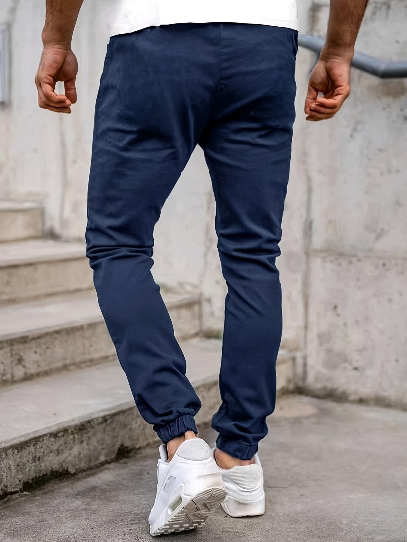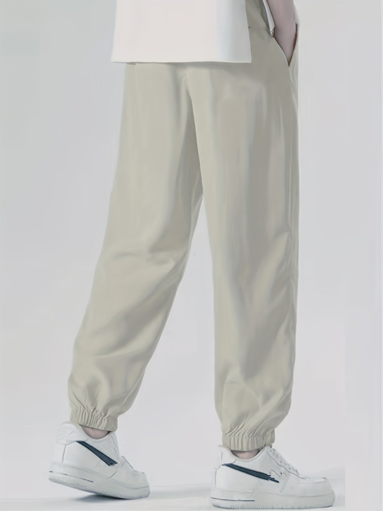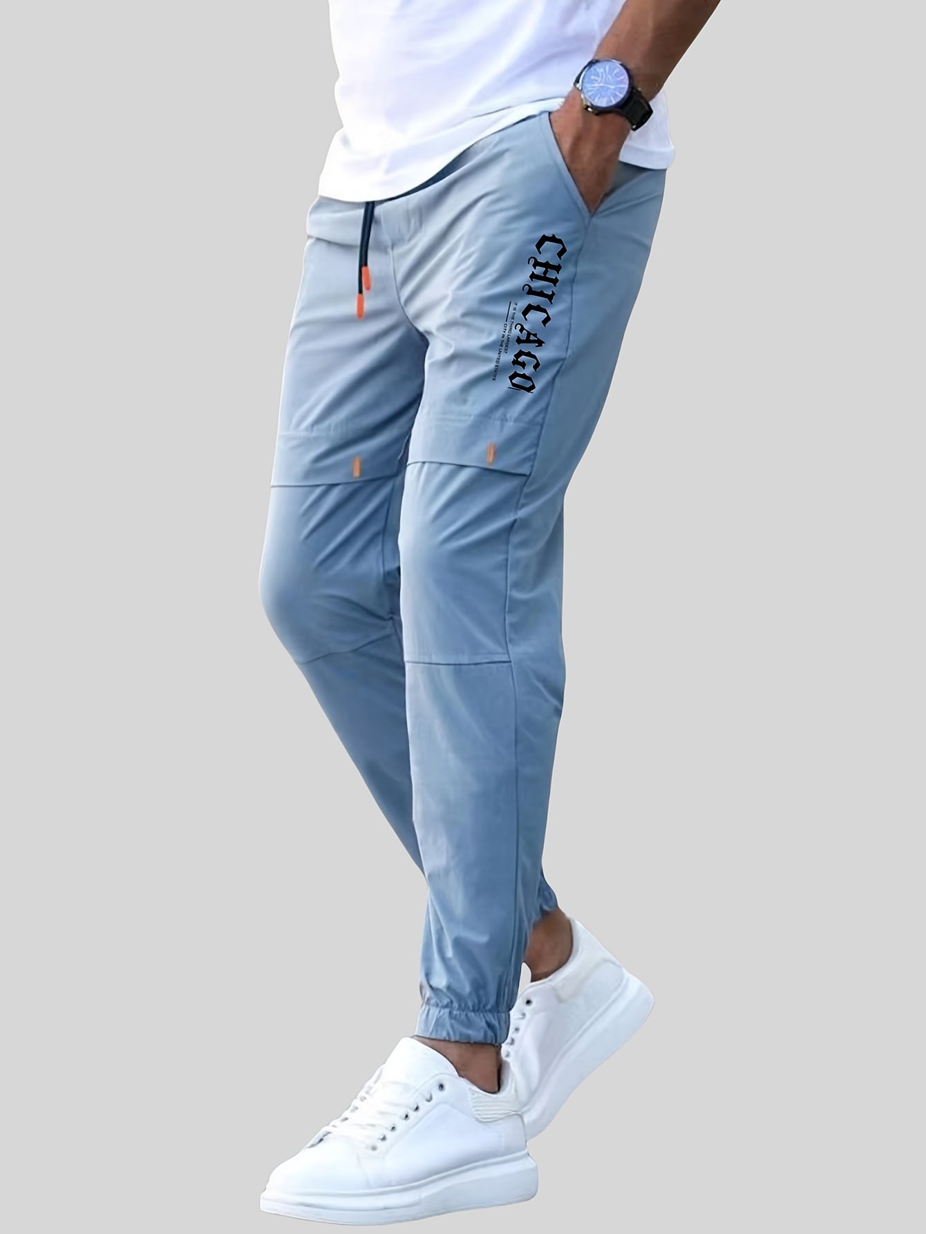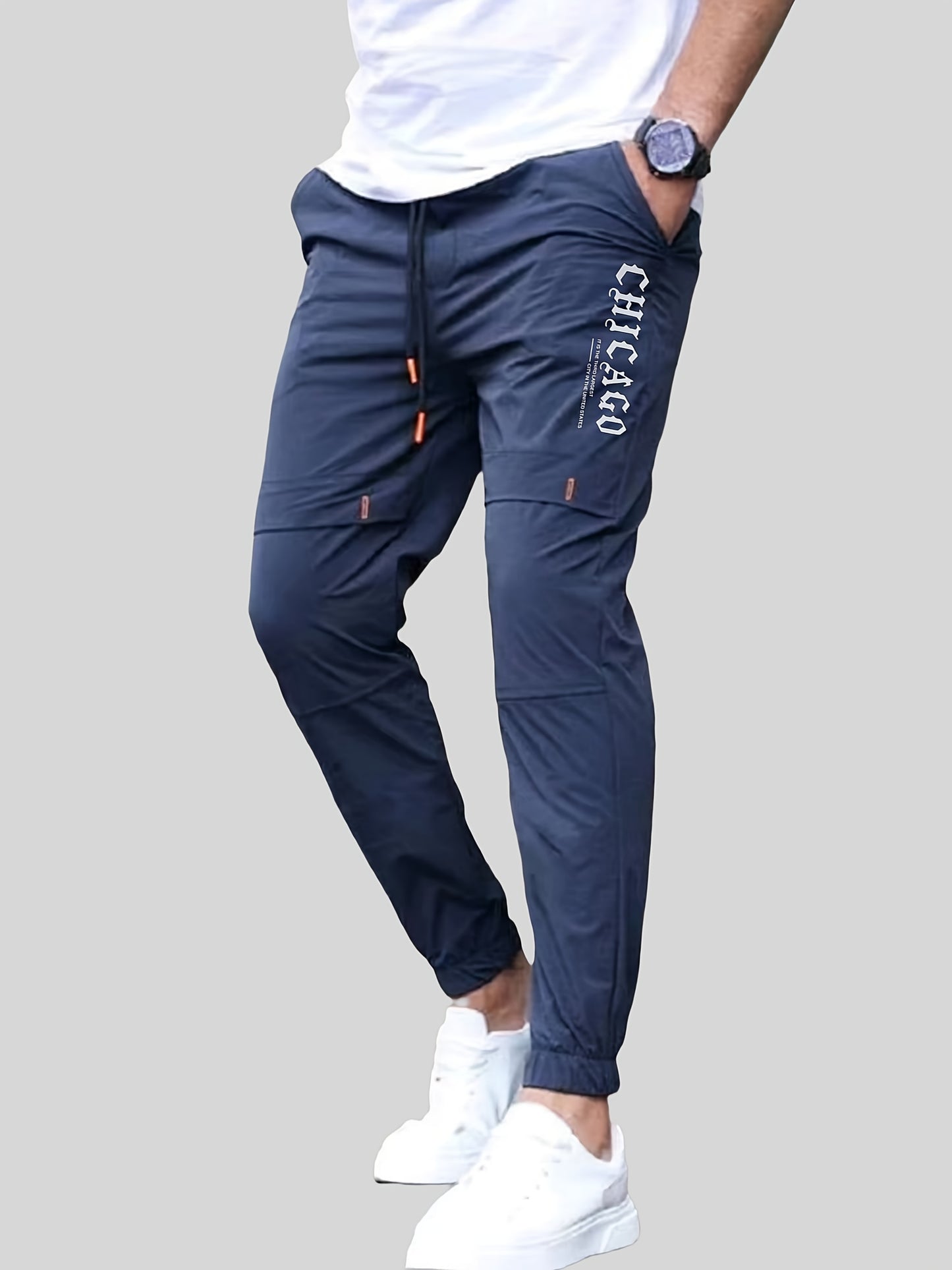Men's Casual Drawstring Joggers - 100% Polyester, Alphabet Print