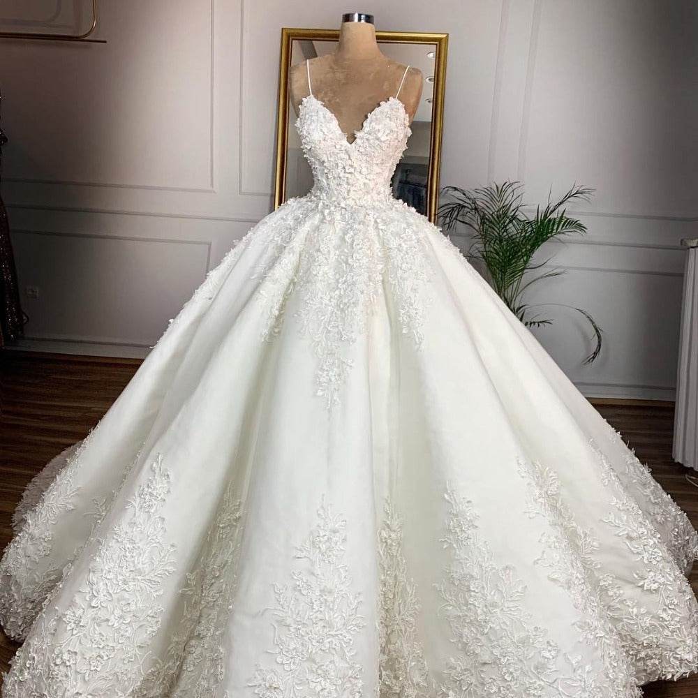 Deep V-Neck Lace Wedding Dress - Elegant Spring Style for 2024
