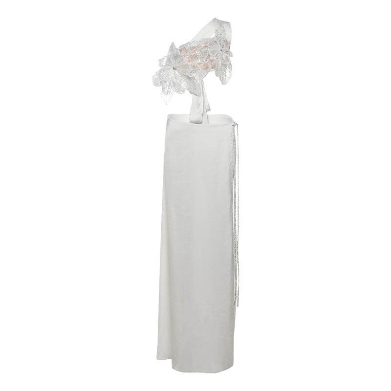 Backless Sequined Lace-up Top & Long Skirt Suit - Stylish Polyester Set