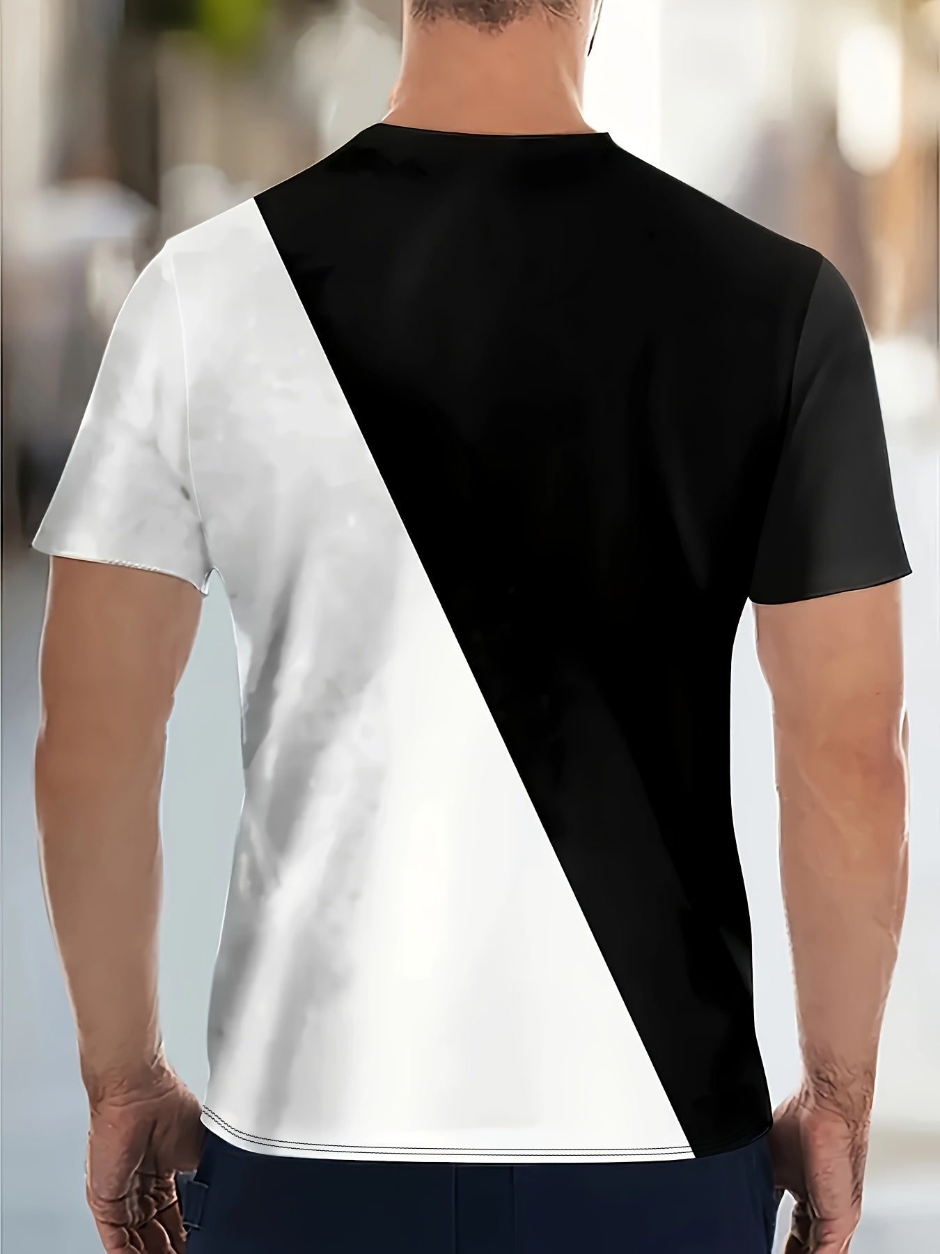 Men's Color Block Crew Neck T-Shirt - Stylish & Comfortable for Spring