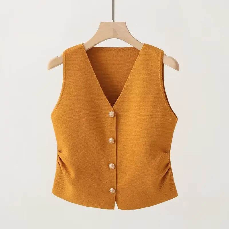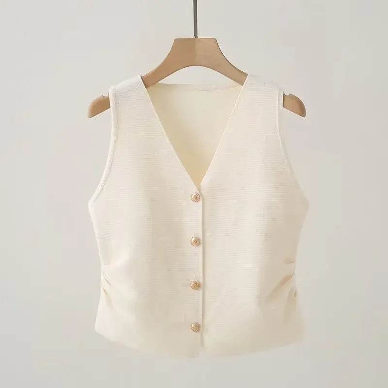 Fictitni Women's Gold Button Front Vest - Chic Spring Summer Style