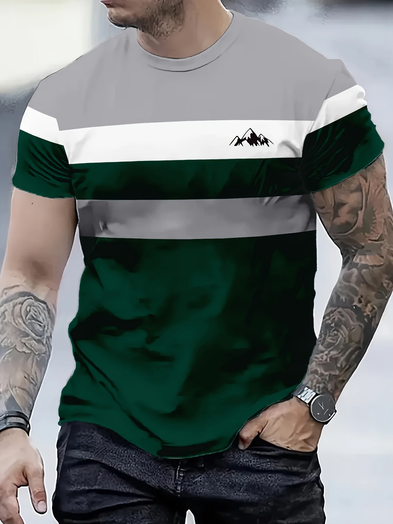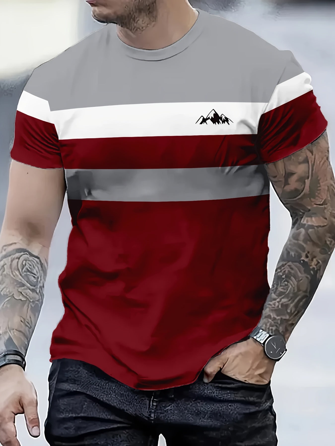Men's Casual T-Shirt - 100% Polyester, Machine Washable, Round Neck