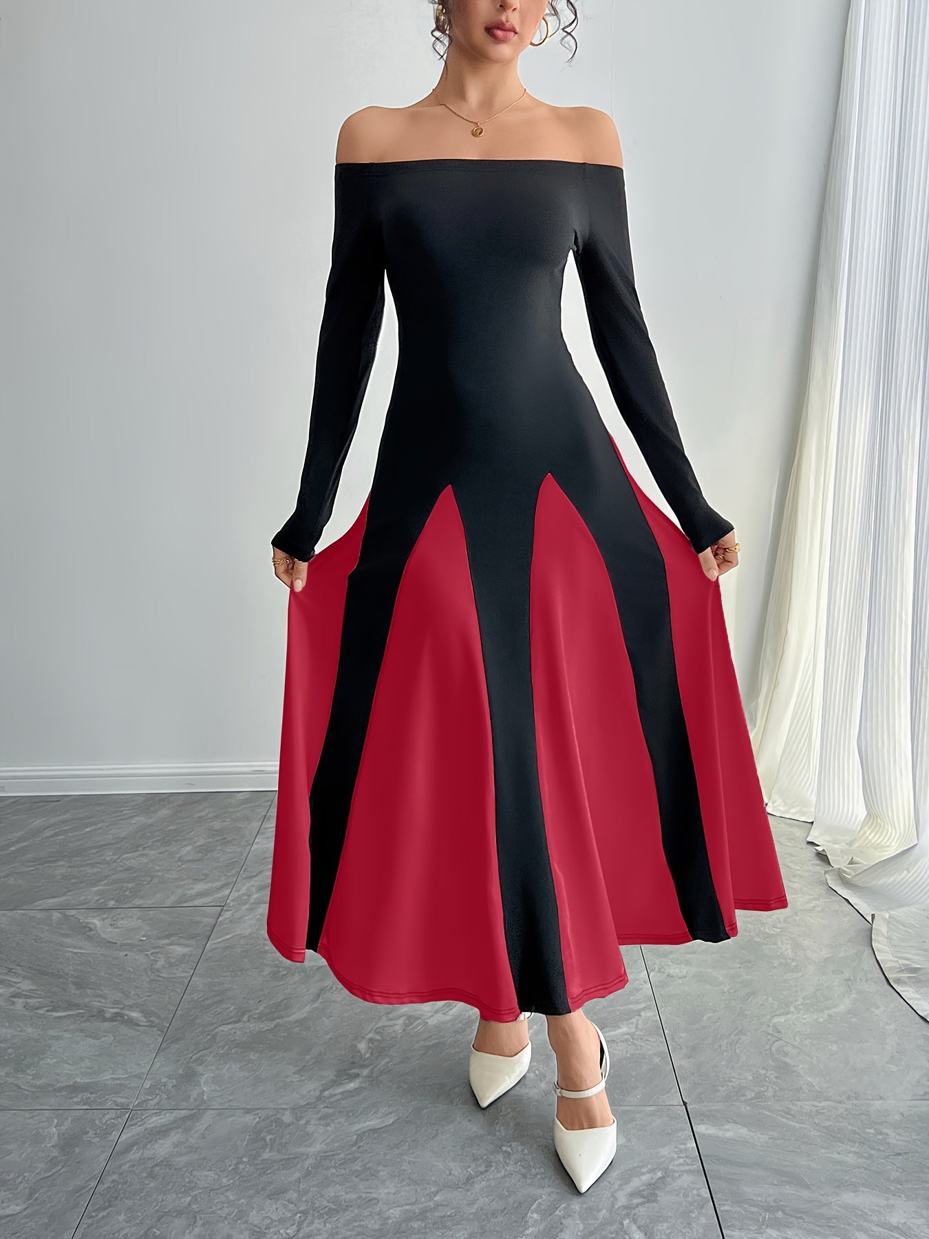 Step into elegance with the Elegant Black and White Symphony Dress. This stunning long sleeve, strapless design is perfect for any sophisticated occasion. Made from 95% polyester, this dress offers a luxurious feel while being easy to care for with machine wash instructions.