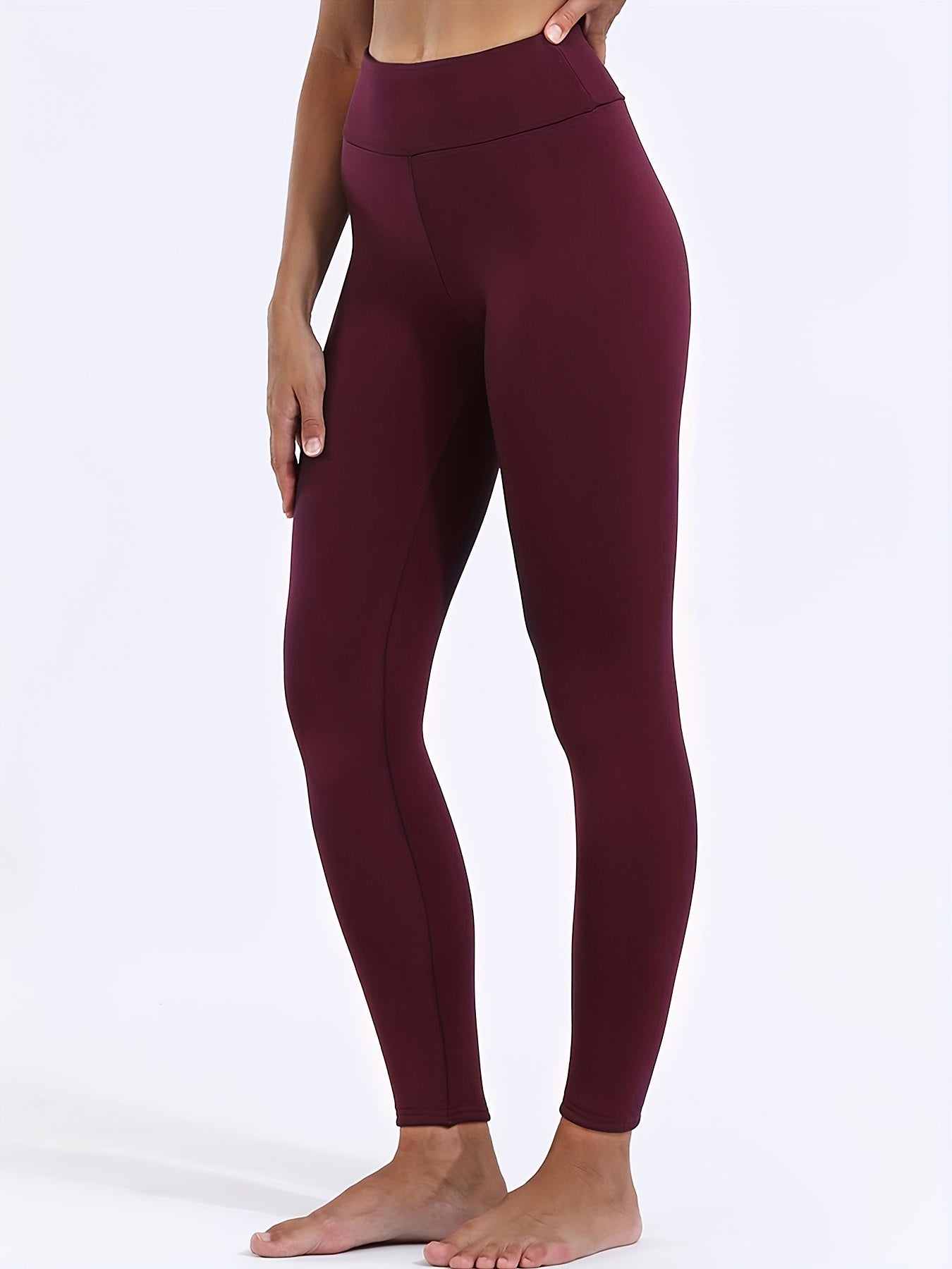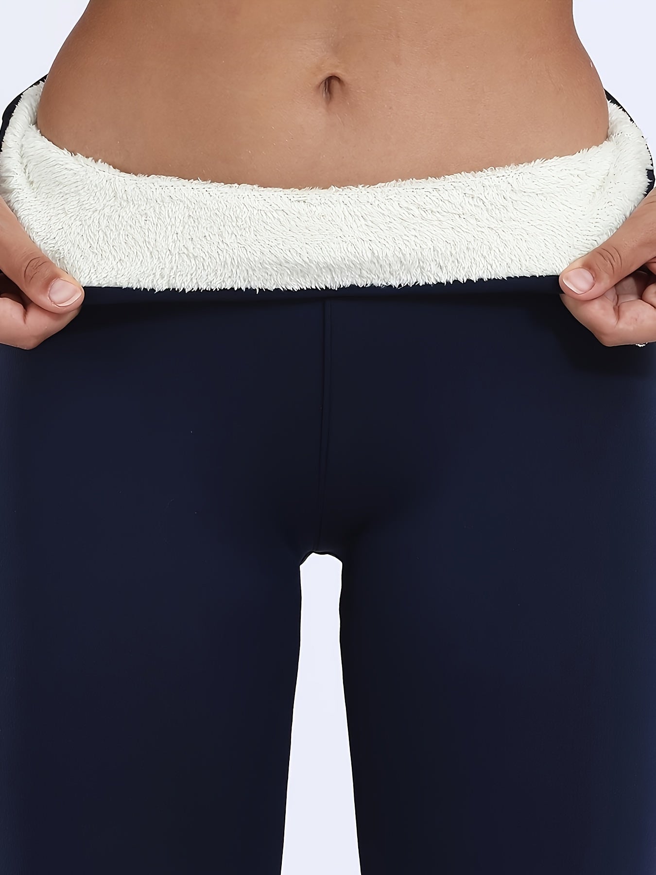 Upgrade your wardrobe with these versatile high-waisted fleece pants. Whether you're running errands or enjoying a relaxed day at home, these leggings provide the perfect blend of style and function. Their solid color and stretchy fabric allow for effortless pairing with any top, making them your go-to choice for comfort and chicness.