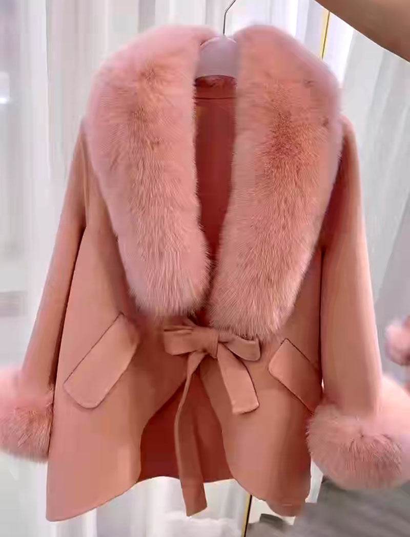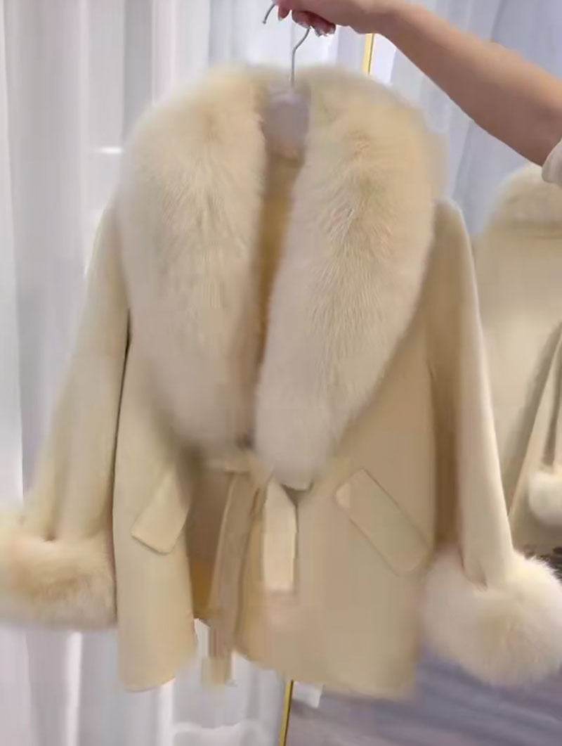 Buycenter Real Wool Autumn Cape Top - Loose Fit with Fur Collar