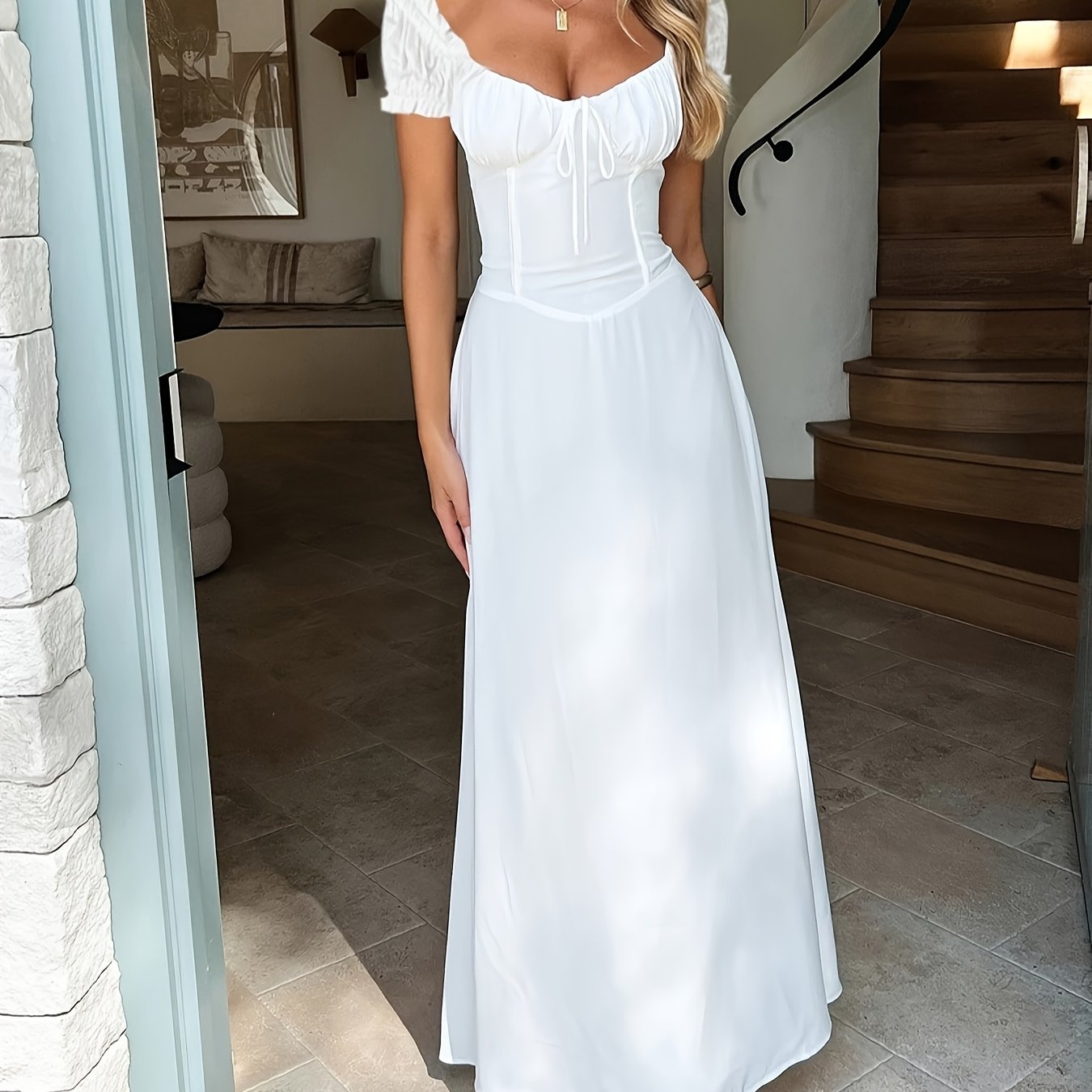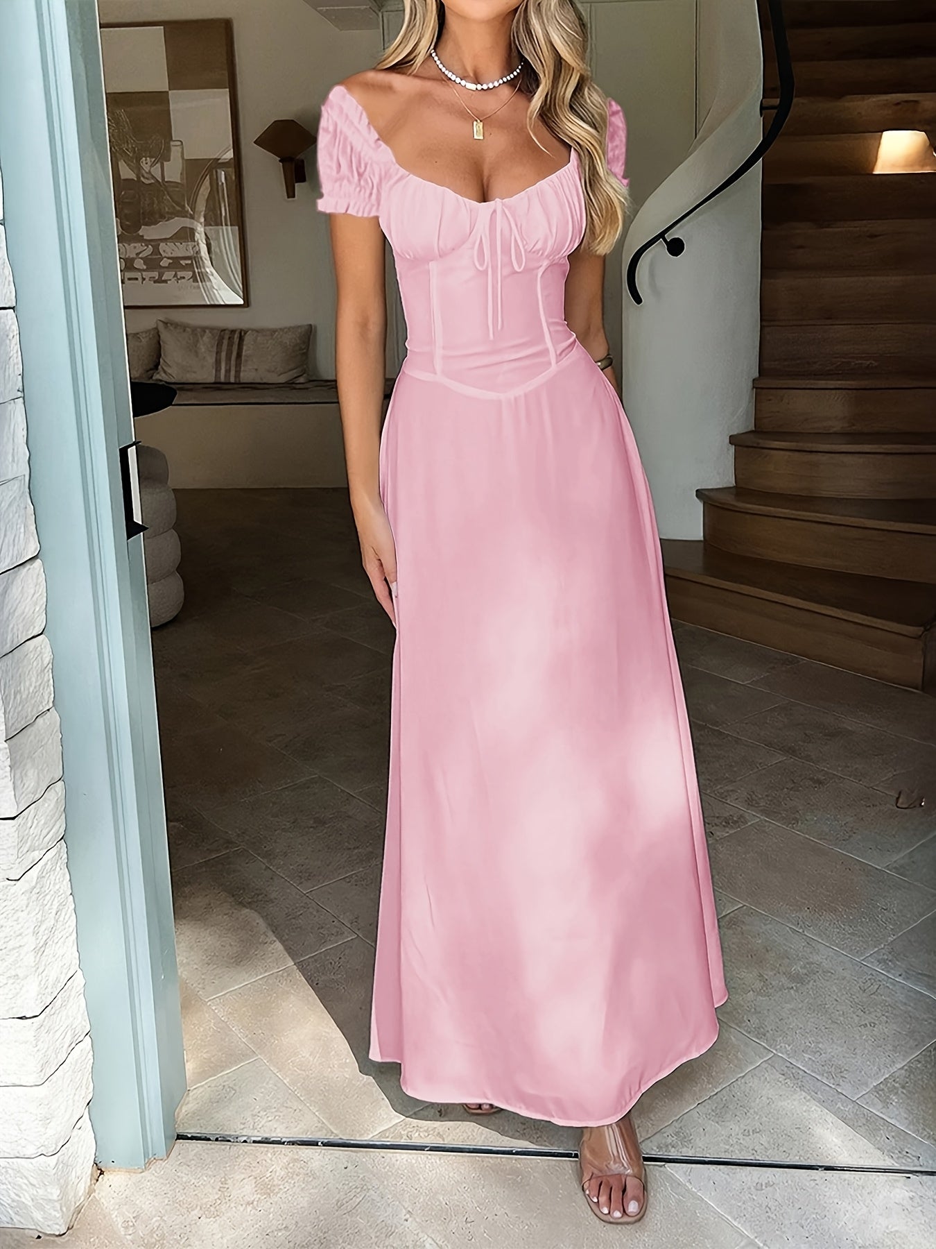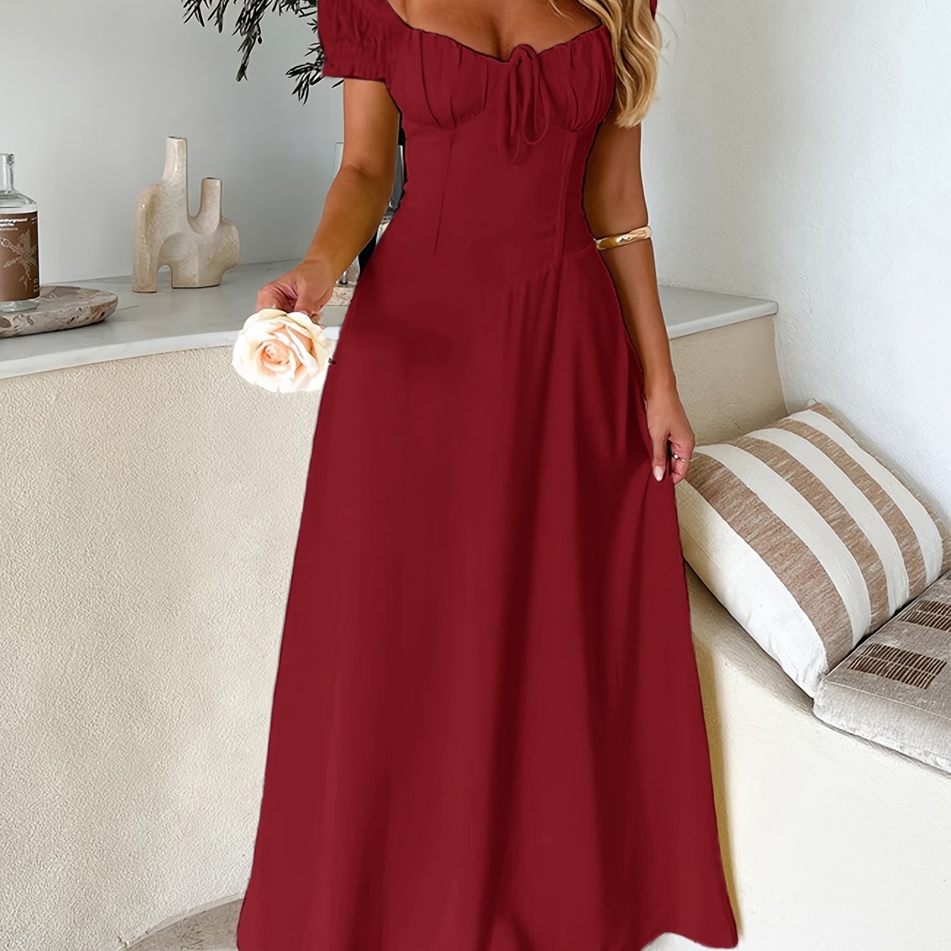 Step into summer with confidence in this stunning off-shoulder dress that brings a touch of bohemian flair to any occasion. Its vibrant hue and flattering fit make it the ideal choice for garden parties, beach outings, or casual day trips. Embrace the season's spirit and shine brightly with this versatile piece that effortlessly matches your lively lifestyle.