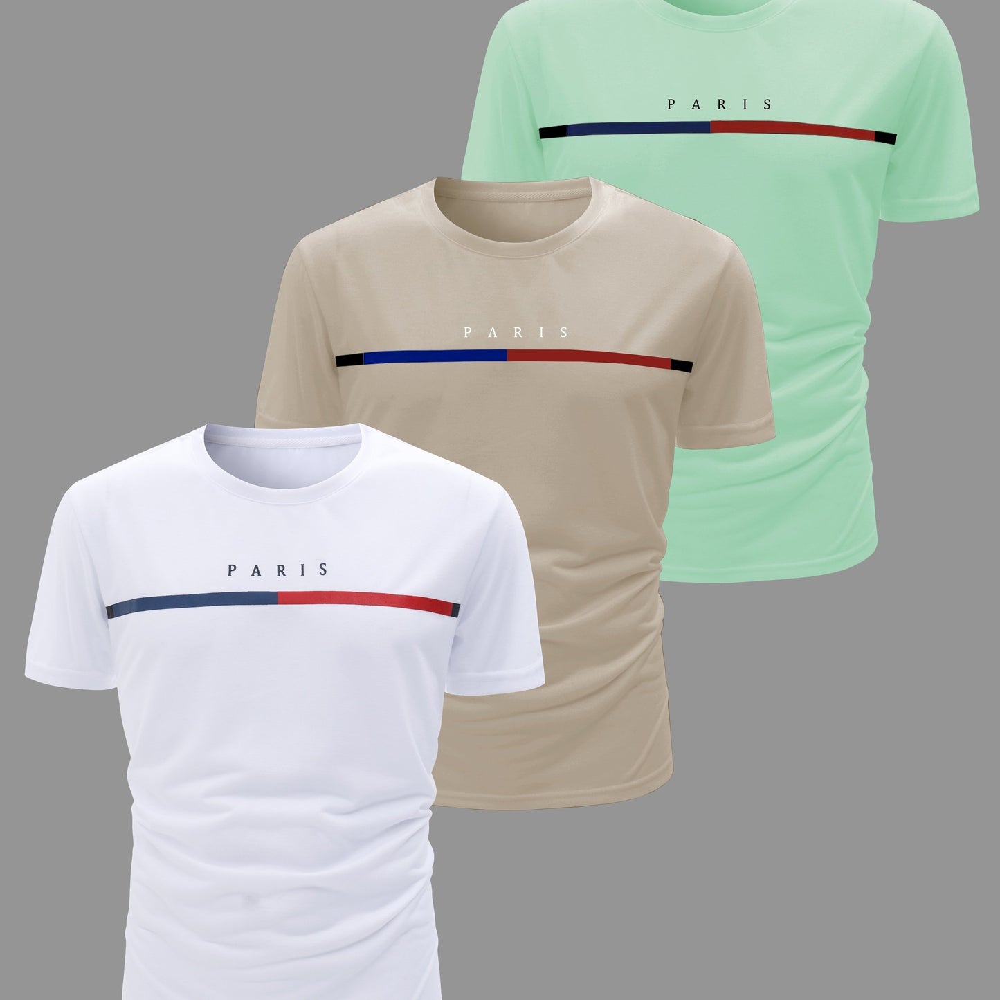 3pcs Men's Casual T-Shirts - Lightweight, Breathable Crew Neck Set