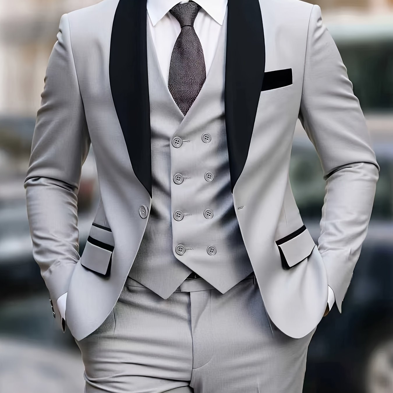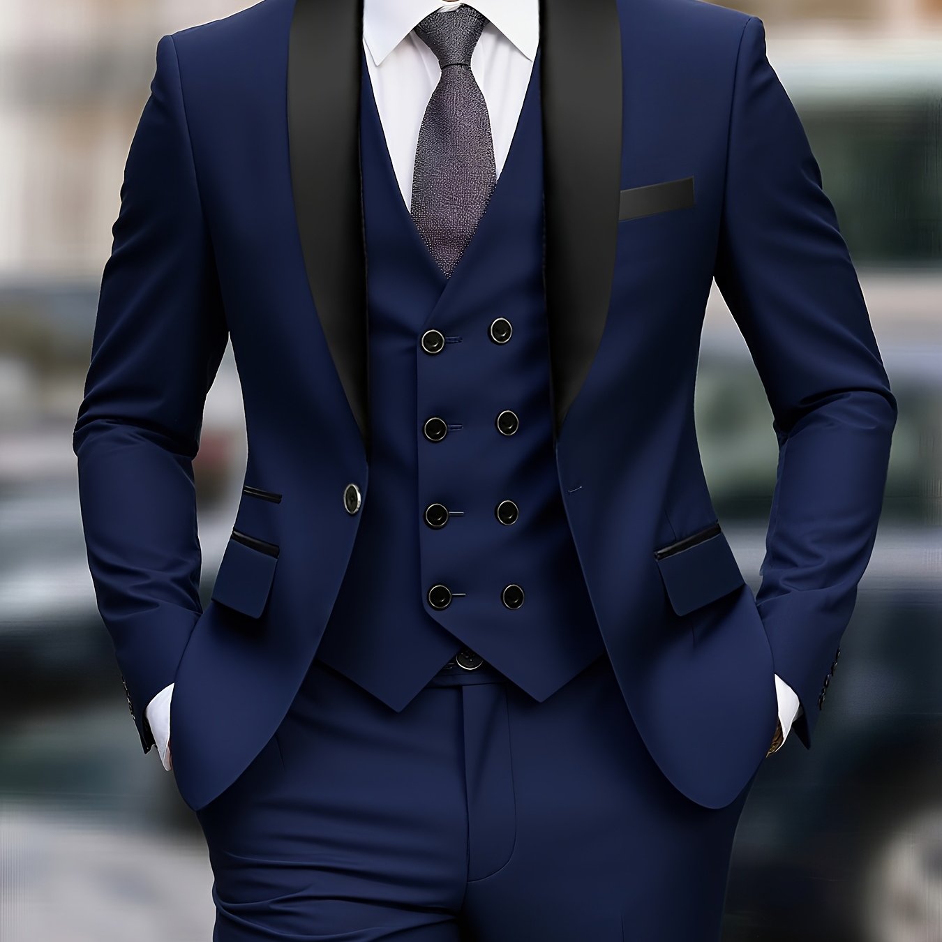 Elevate your style with our Men's 3pcs Luxury Tailored Suit Set, available in classic colors like Blue, Gray, and Black. This elegant lapel collar design is perfect for business, weddings, and formal events, ensuring a sharp and polished look.