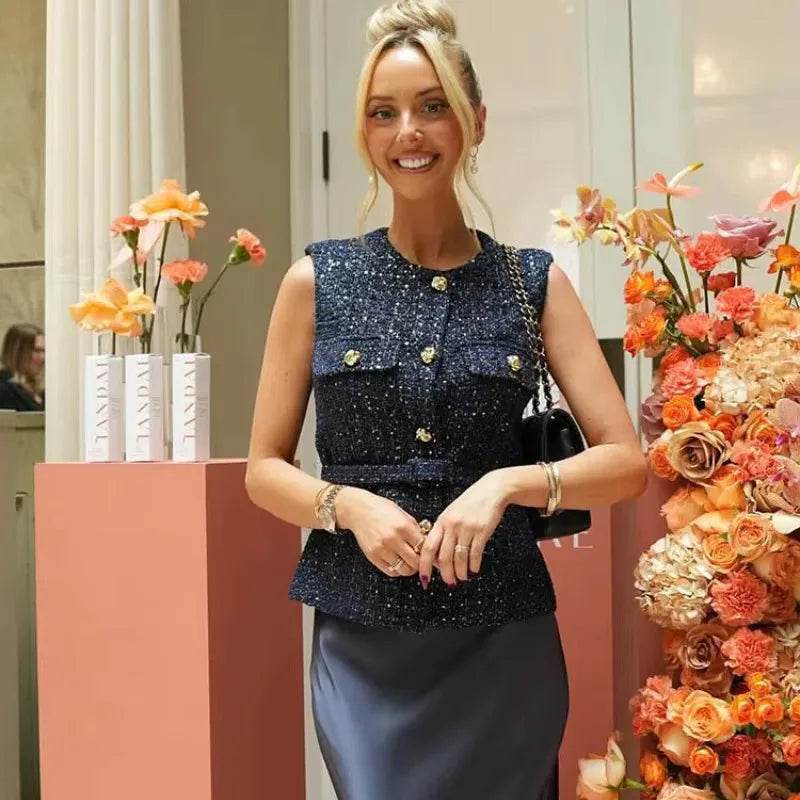 TRAF Women's Sequin Sleeveless Vest - Vintage Button Outerwear