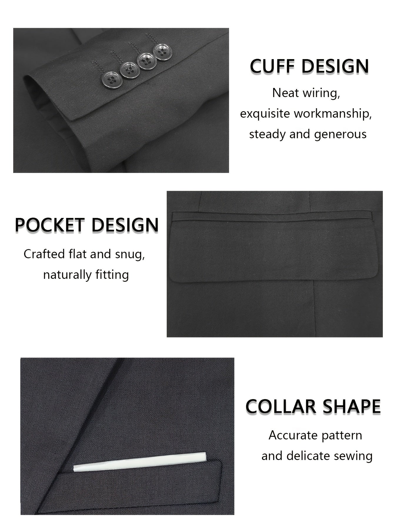 - Stylish notch lapel design for a sharp look