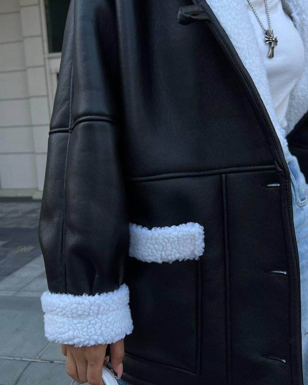 Korean Style Leather & Fur Coat - Trendy, Warm Long Sleeve Design