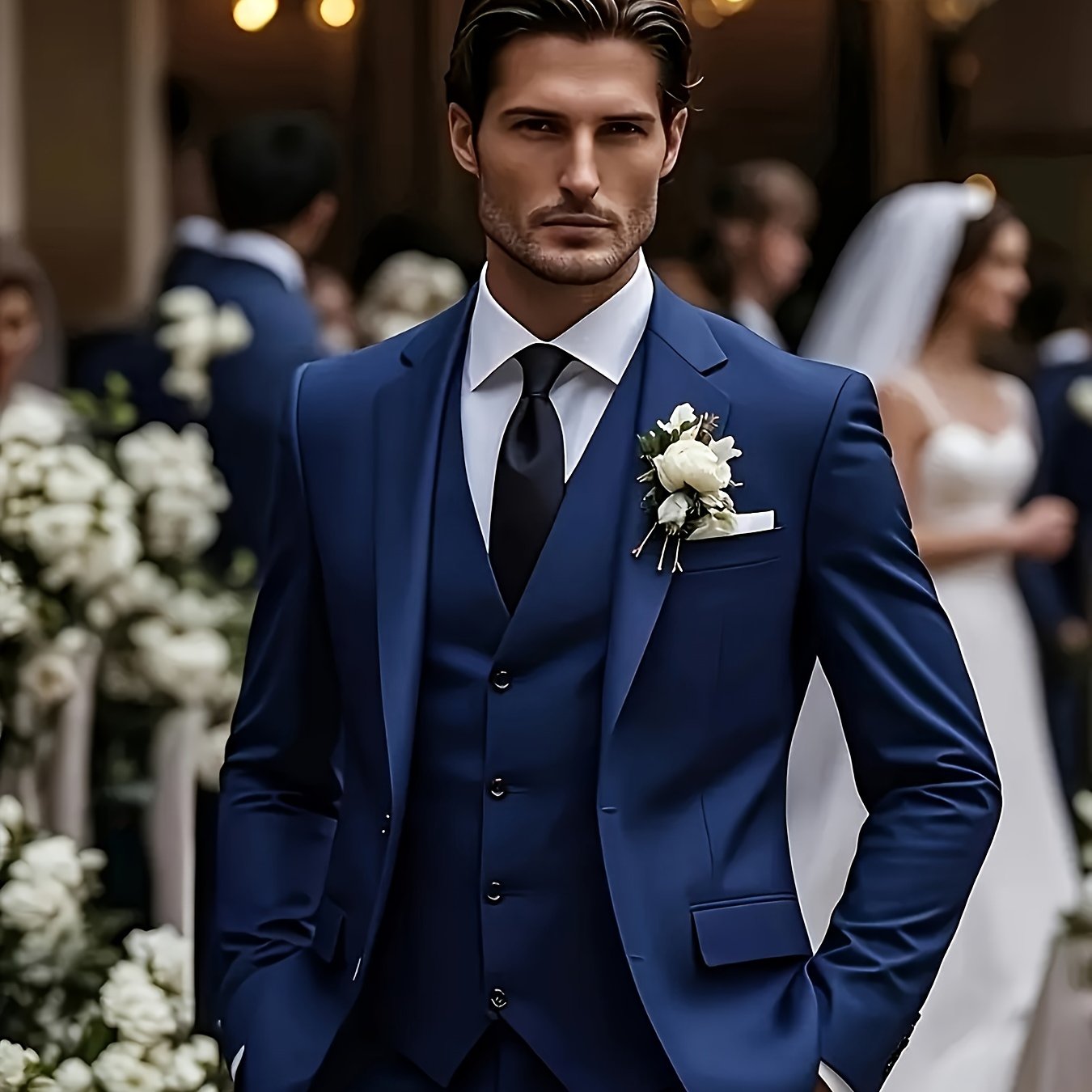 Elevate your wardrobe with our Men's Premium Three-Piece Suit Set, featuring a stylish jacket, matching pants, and a classic vest. Crafted from high-quality polyester, this set is perfect for formal wear, weddings, work environments, or as a thoughtful holiday gift.