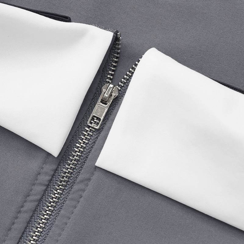 Contrast Color Two-Piece Jumpsuit - Trendy Gray & Black Wide-Leg Style